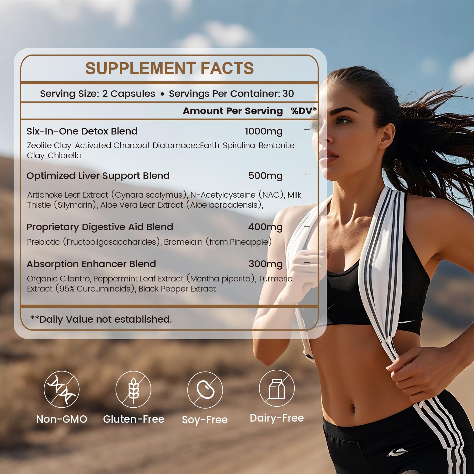 - Comprehensive Detox Formula: This formula includes zeolite clay, activated charcoal, and spirulina to effectively absorb toxins and heavy metals, supporting the body’s natural detoxification and internal balance process.