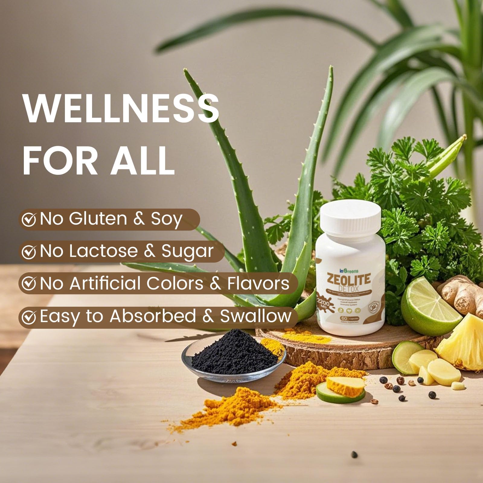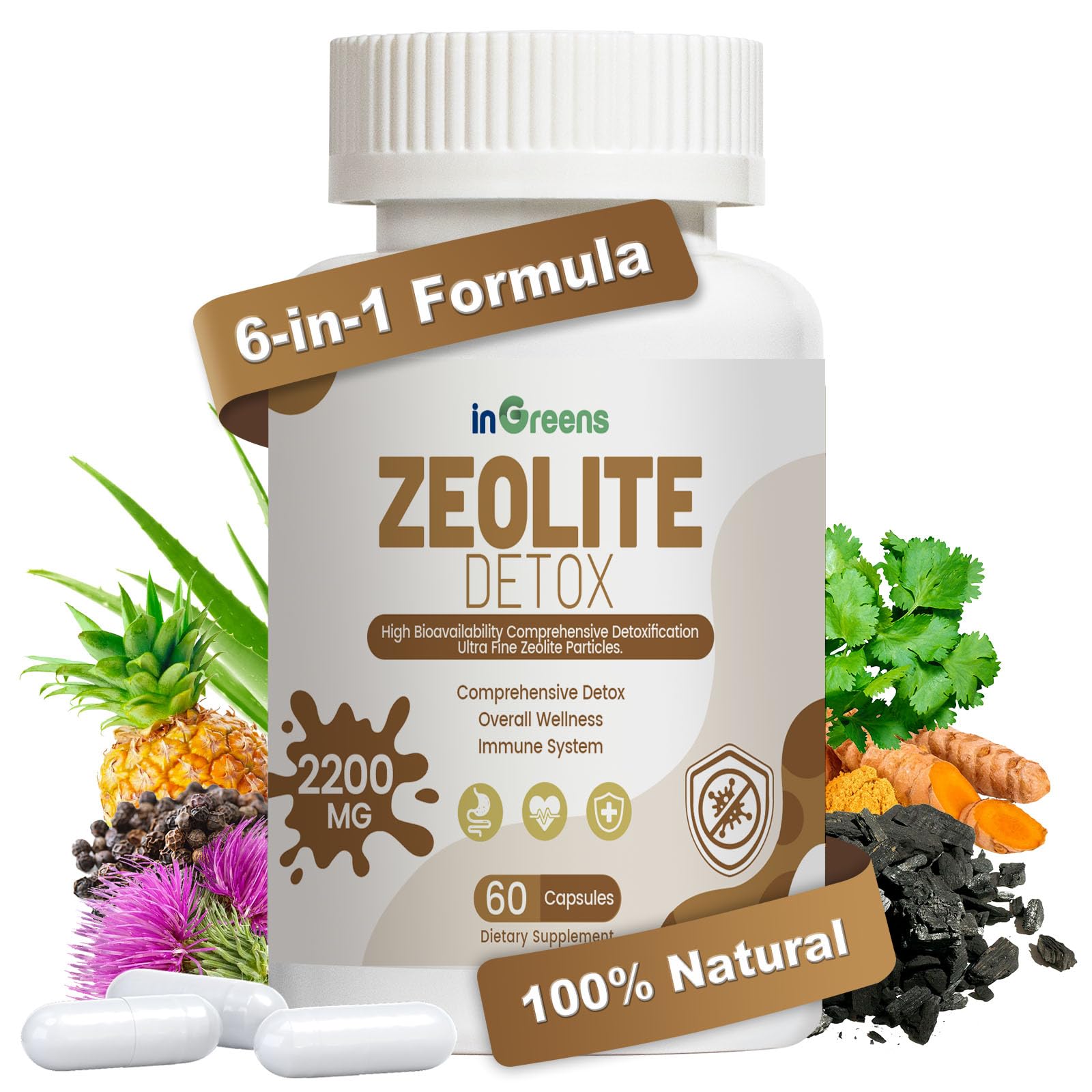 inGreens 2200 MG Zeolite Detox Capsules, 6-in-1 Zeolite Full Body Detox Cleanse - Activated Charcoal & Zeolite Clay for Heavy Metal Detox | Support Gut Health | Milk Thistle, Prebiotic, 60 Capsules