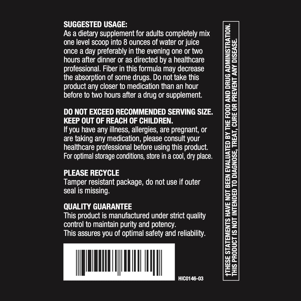- HOW TO USE: As a dietary supplement for adults, completely mix one level scoop into 8 ounces of water or juice once a day preferably in the evening one or two hours after dinner, or as directed by a healthcare professional. Fiber in this formula may decrease the absorption of some drugs. Do not take this product any closer to medication than an hour before to two hours after a drug or supplement.