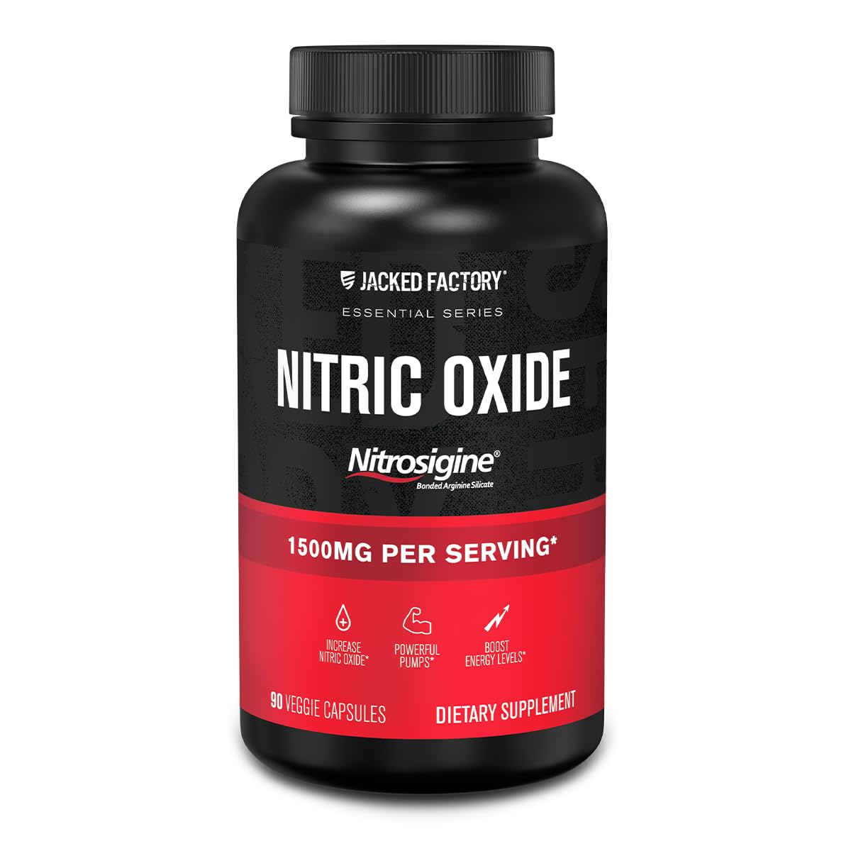- Nitric Oxide Booster: Formulated with premium patented Nitrosigine, Essentials Nitric Oxide will boost nitric oxide levels, enhance blood flow, increase natural energy, and take your training to the next level. Experience skin-tearing pumps, improved strength, and greater muscle fullness after just one dose of Jacked Factory’s Essentials Nitric Oxide.