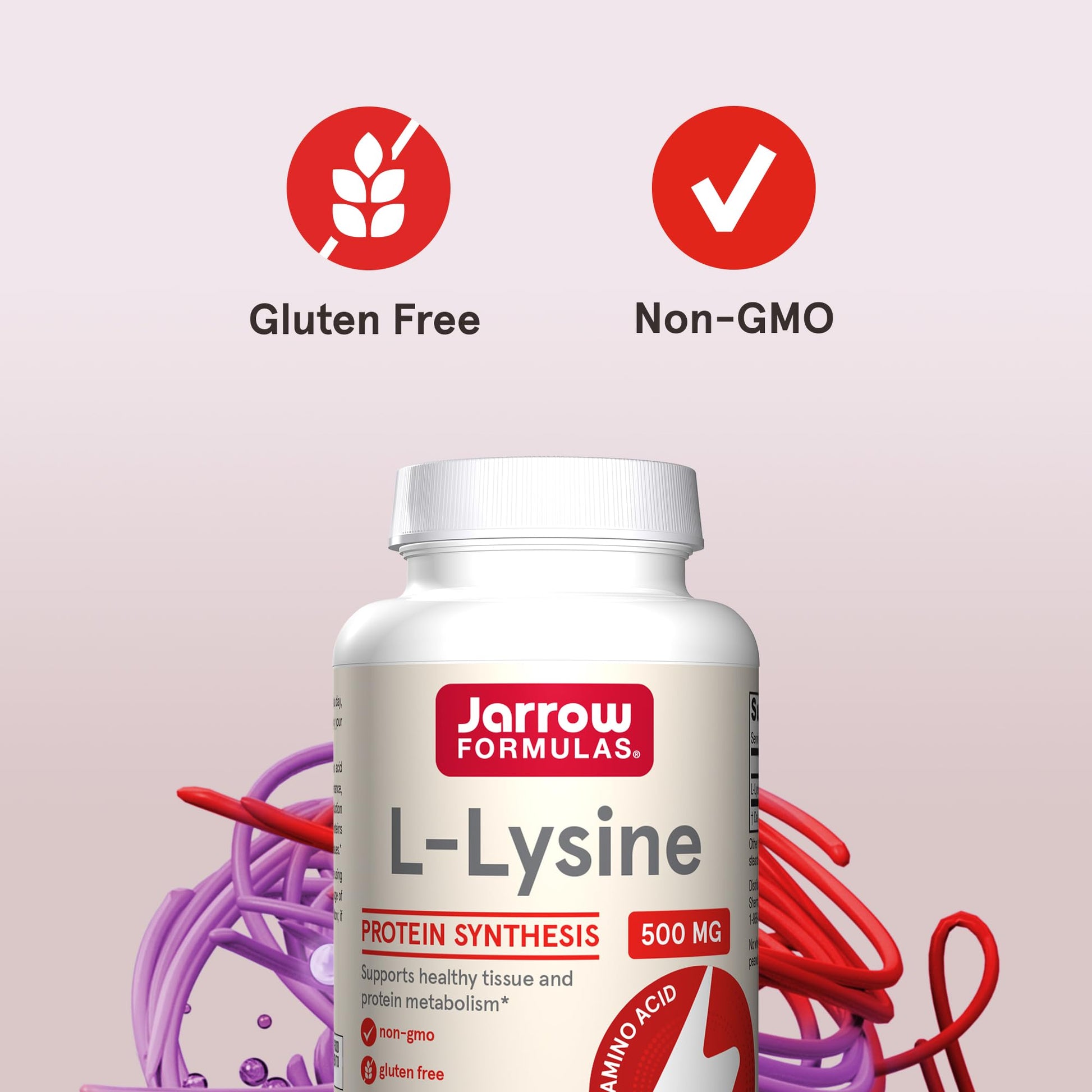 Jarrow Formulas L-Lysine 500 mg, Dietary Supplement, Amino Acid for Protein Synthesis and Healthy Tissue Support, 100 Capsules, 100 Day Supply