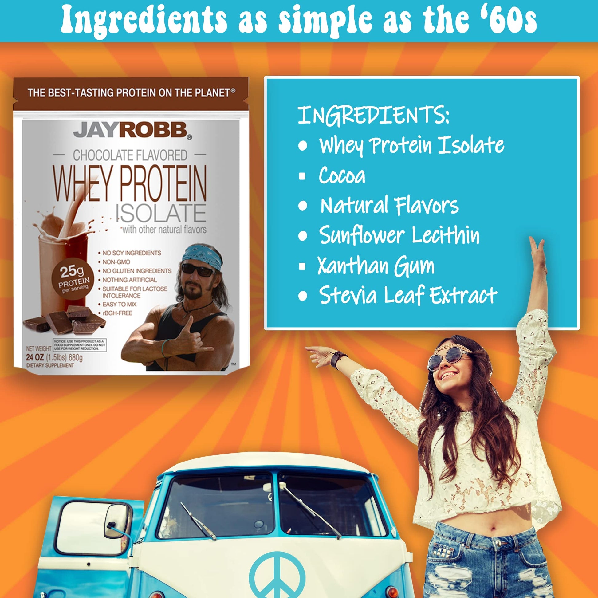 Jay Robb Whey Isolate Protein Powder, Low Carb, Keto, Vegetarian, Gluten Free, Lactose Free, No Sugar, No Fat, No Soy, Nothing Artificial, Non-GMO, Convenient Individual Serving Packet, Chocolate