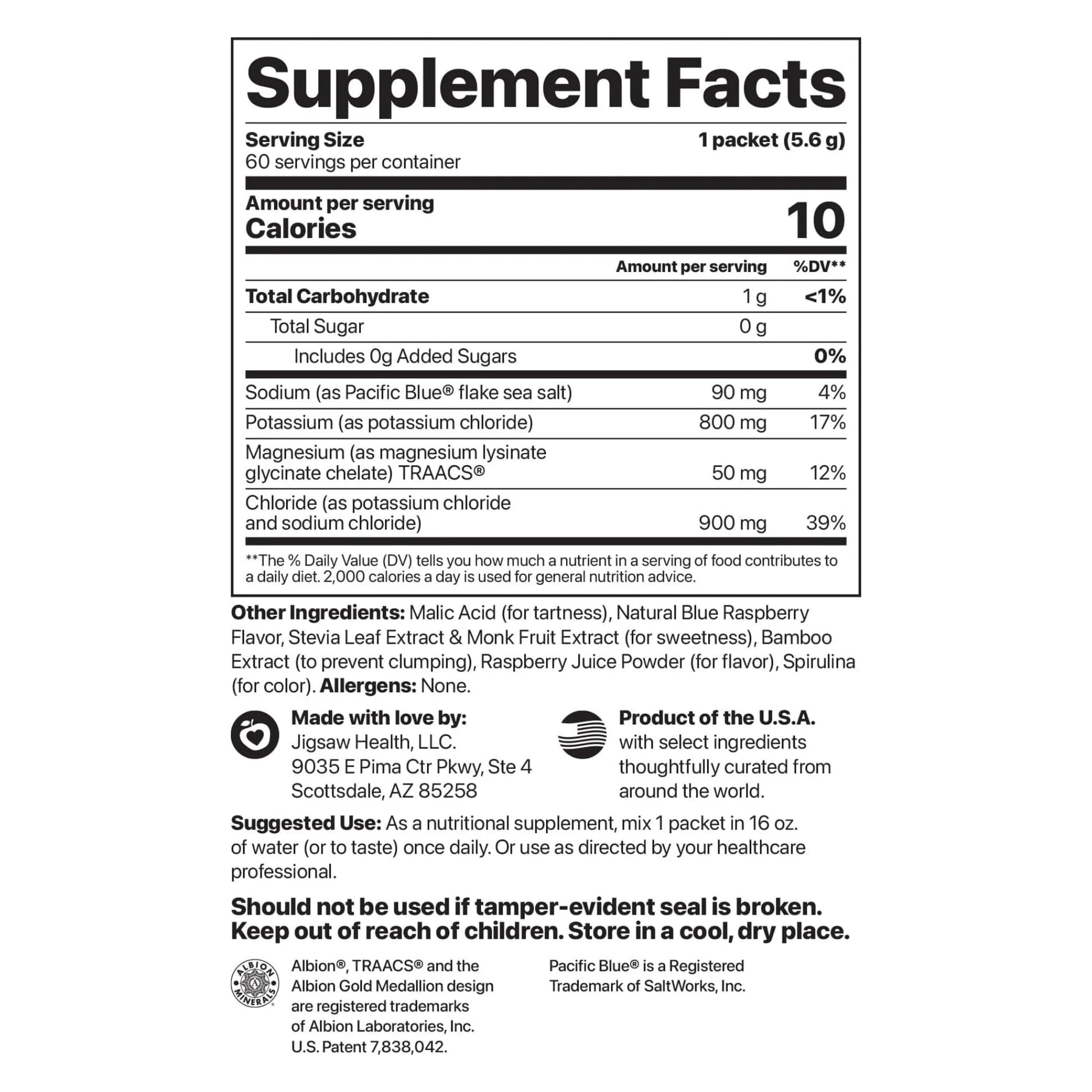Jigsaw Health Potassium Cocktail | Formerly Pickleball Cocktail | Blue Raspberry Flavor | 60 Servings (Packets)