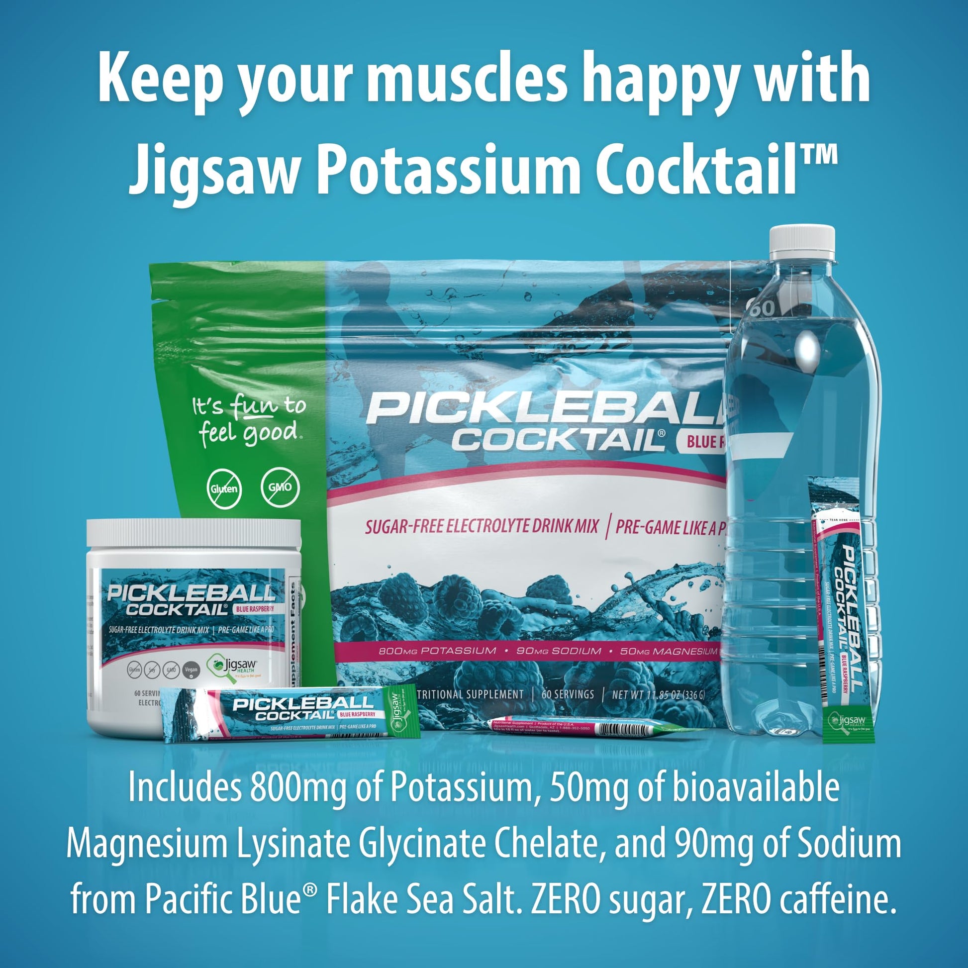 - Potassium Electrolyte Drink: Start every morning with Jigsaw Pickleball Cocktail, a sugar free, delicious orange flavored beverage with as much Potassium as two bananas; Keep your muscles happy while you're active