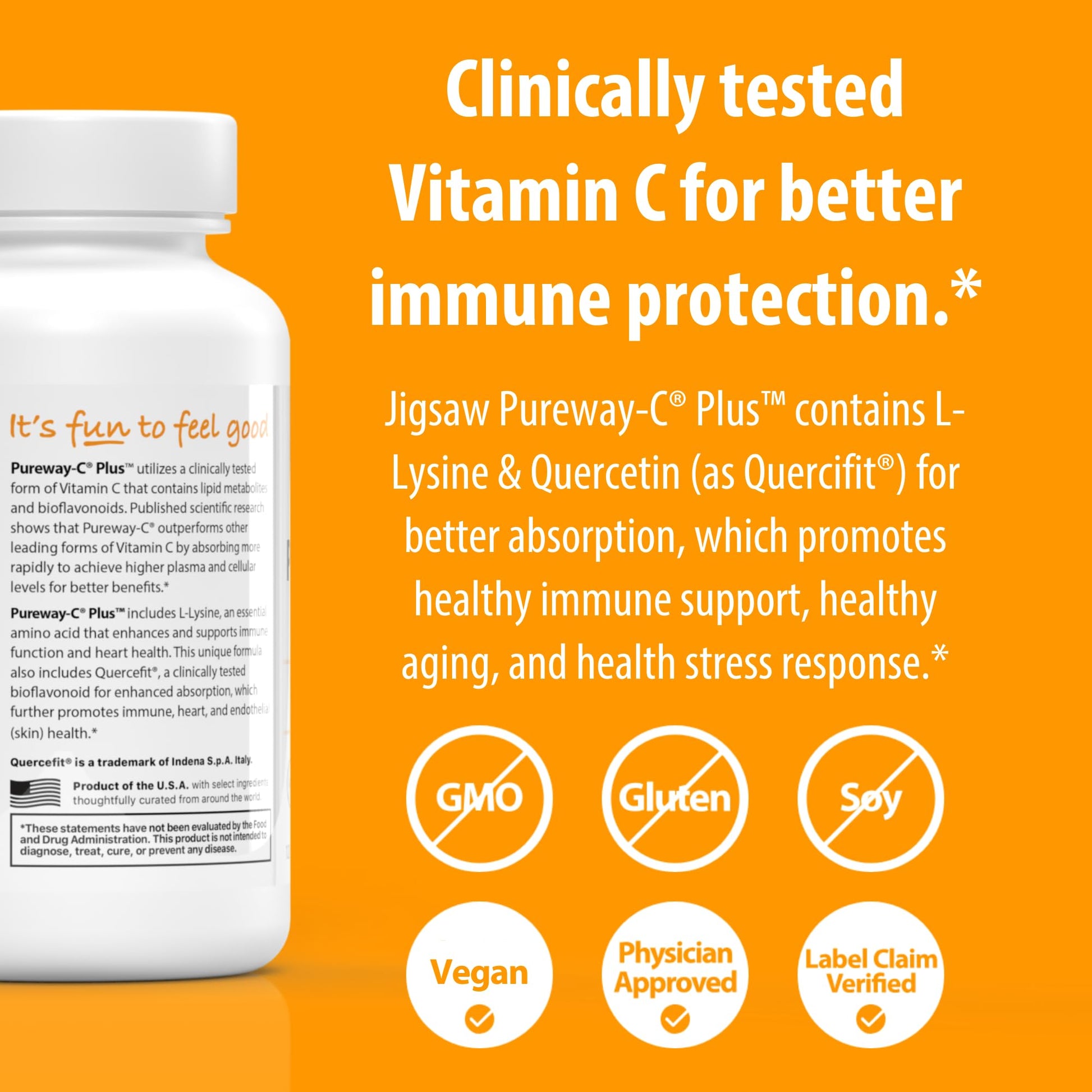 Jigsaw Health Pureway-C Plus | Vitamin C with L-Lysine and Quercetin | Promotes Healthy Immune System Response | 120 Capsules | 60 Servings
