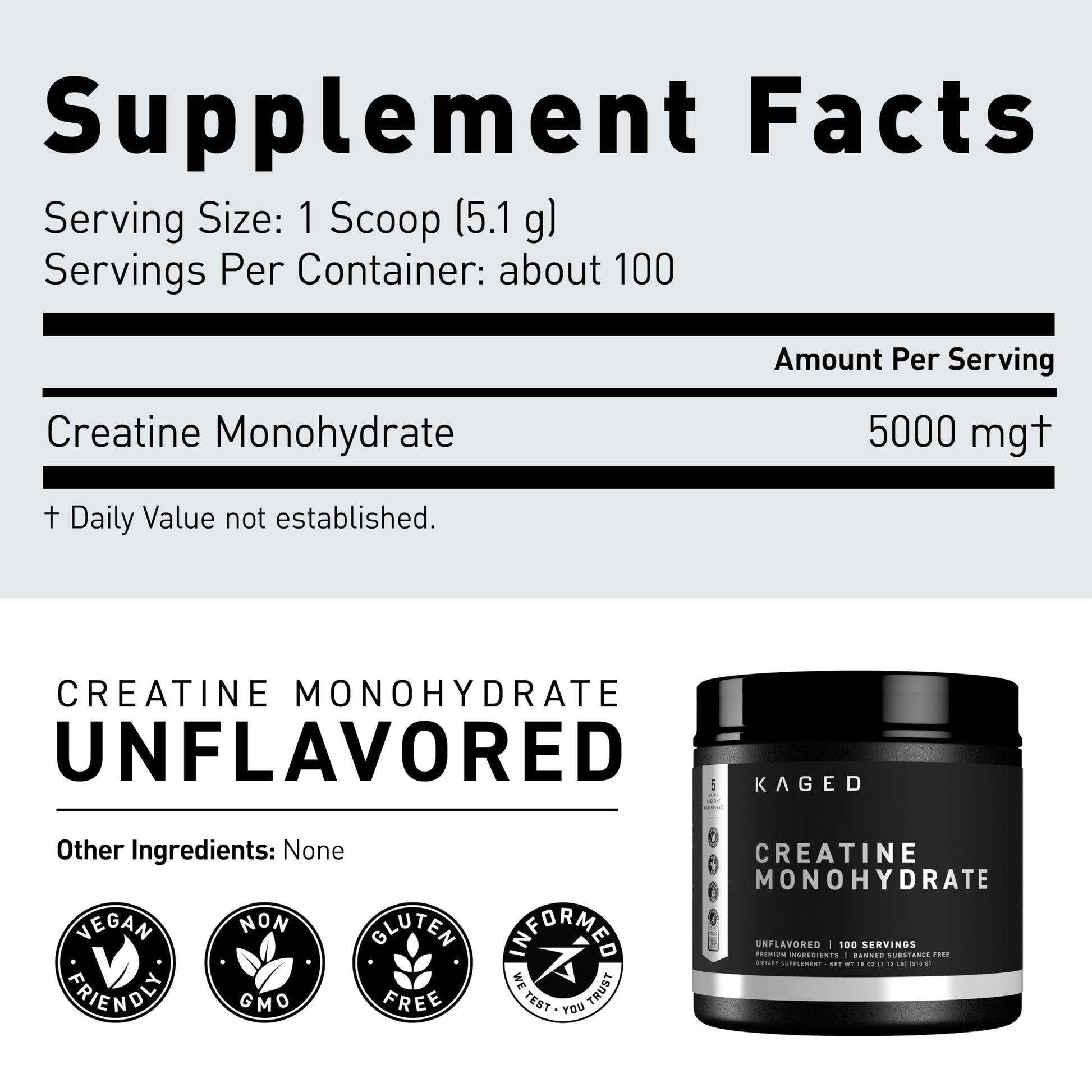 Kaged Creatine Monohydrate Micronized Powder, 100 Servings, Unflavored, Muscle Recovery and Growth Supplement for Men & Women, Vegan, Easily Digestible, Gluten Free, Keto Friendly