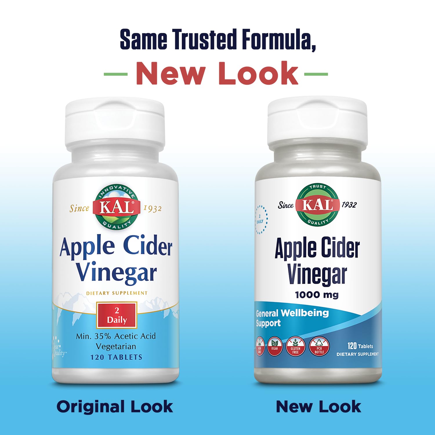 KAL Apple Cider Vinegar Capsules, 500 mg, 120 Count