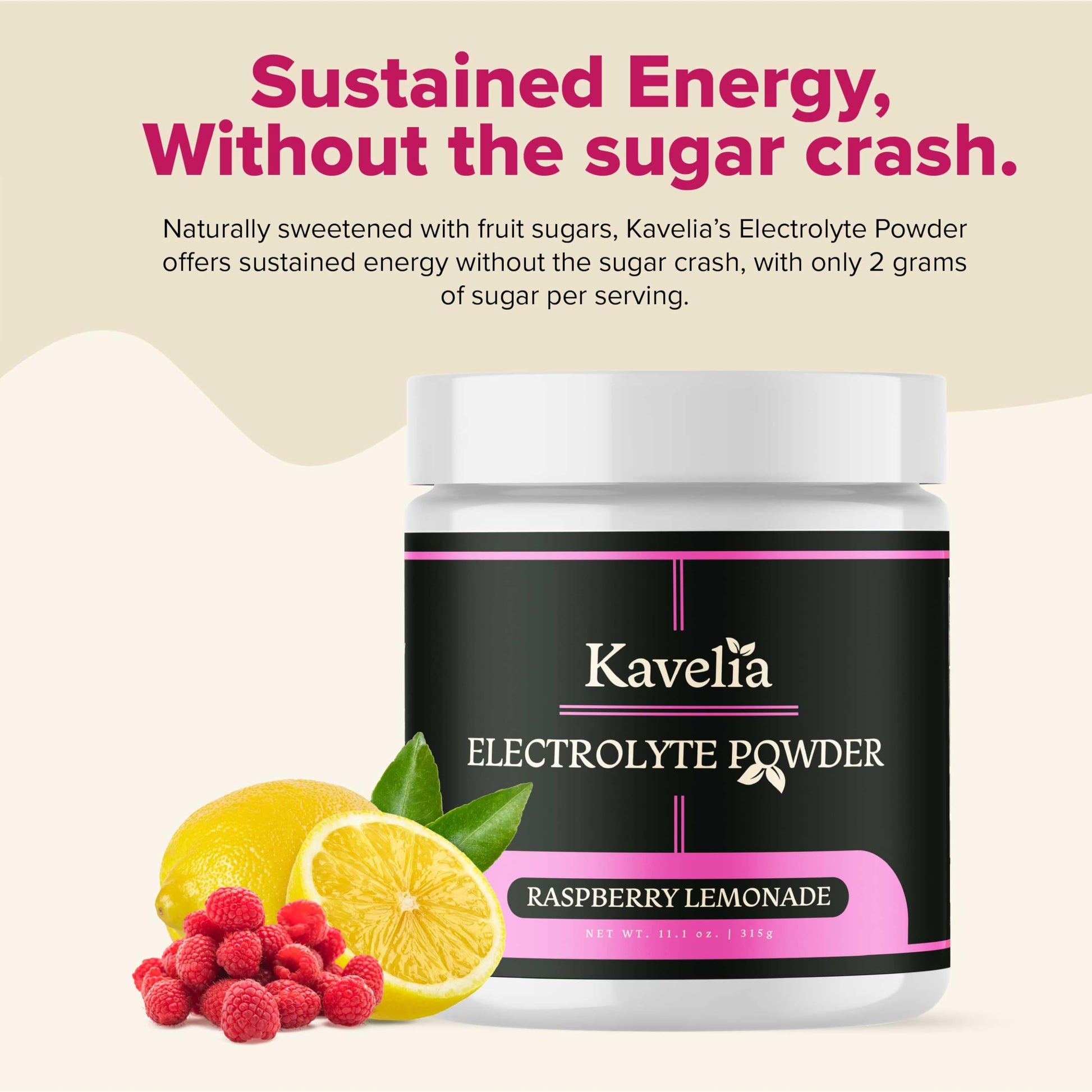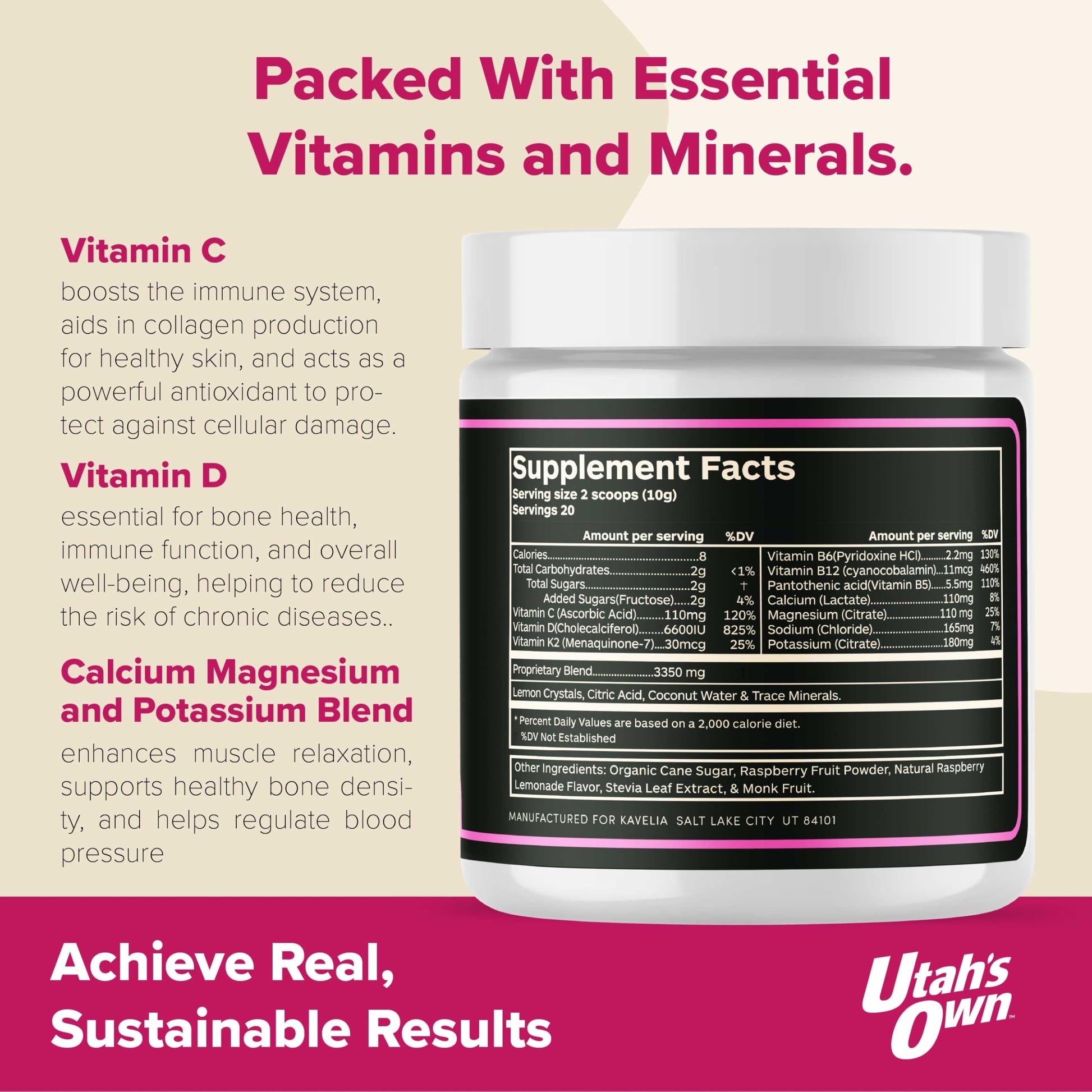Kavelia Ultra Premium Electrolyte Powder Keto Diet - Essential Minerals, Including Calcium, Magnesium, and Potassium, with Vitamins C, D3, and K2 (Regular, Rasberry Lemonade)