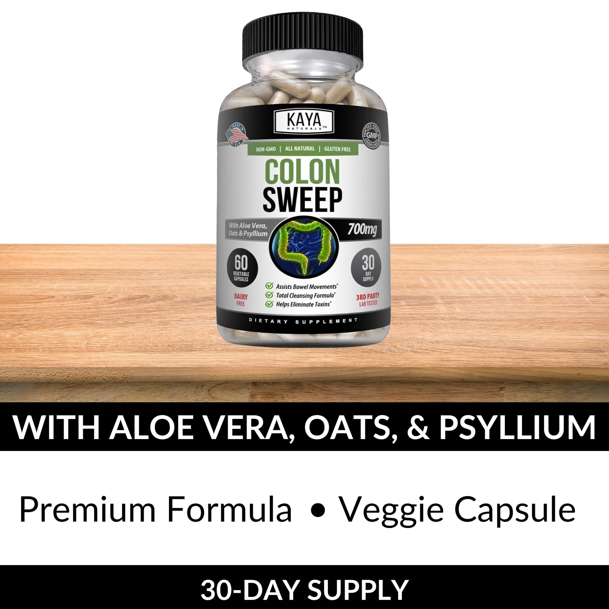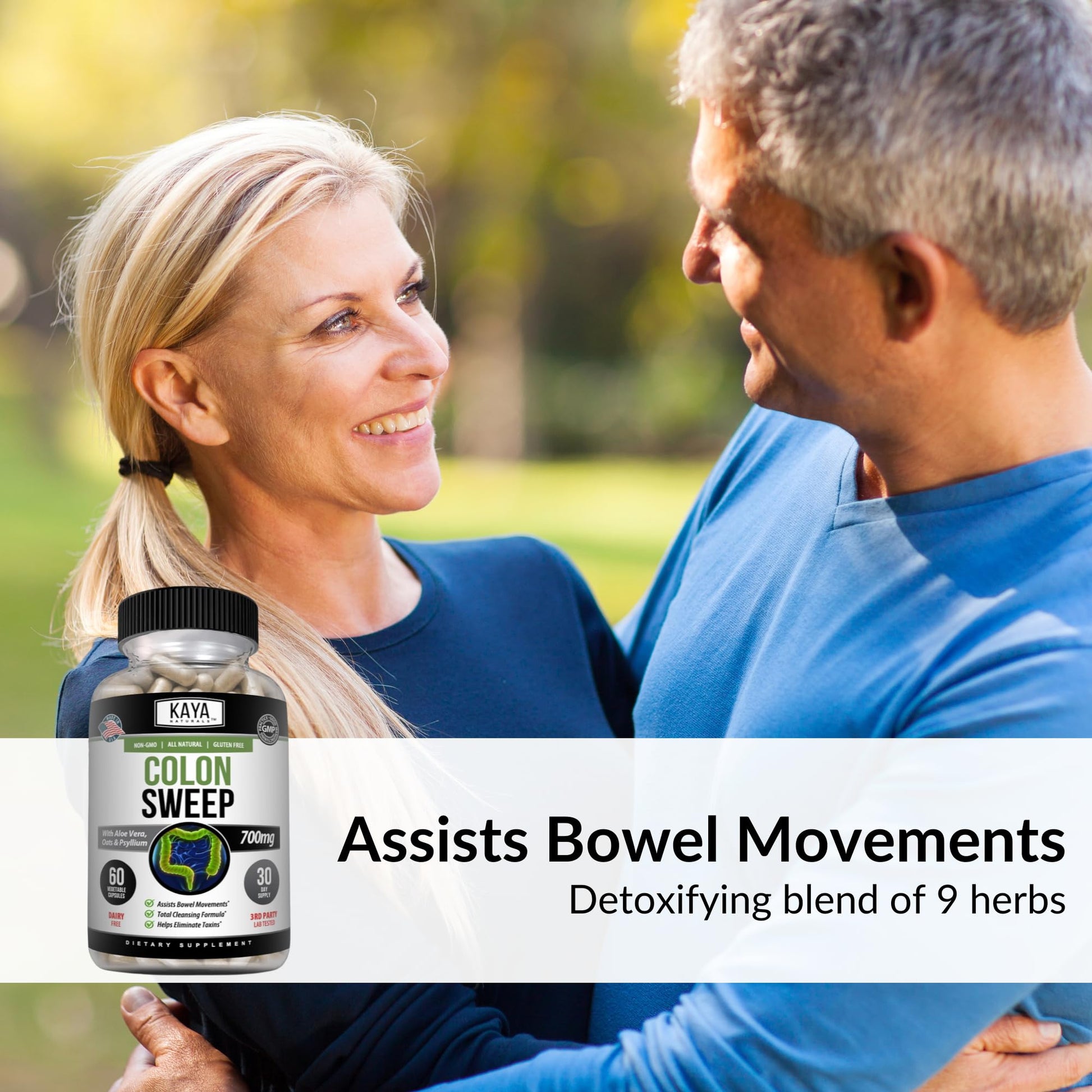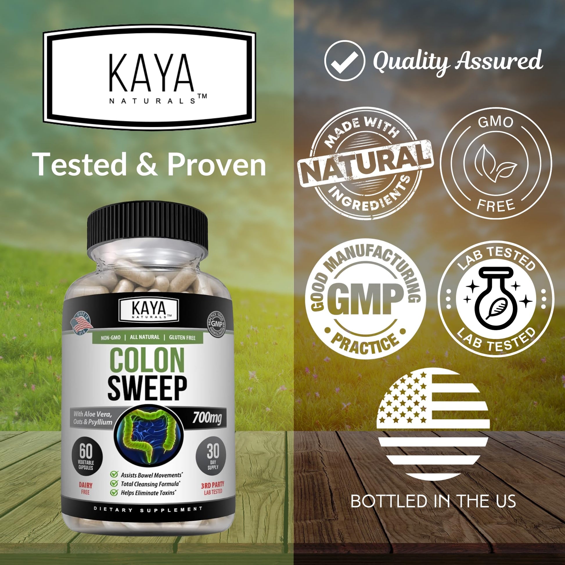 Kaya Naturals Colon Sweep | Colon Cleanser 30-Day Fast-Acting with Herbs & Probiotics, Supports Healthy Bowel Movements, Cleansing Formula with Fiber, Non-GMO - 60 Capsules
