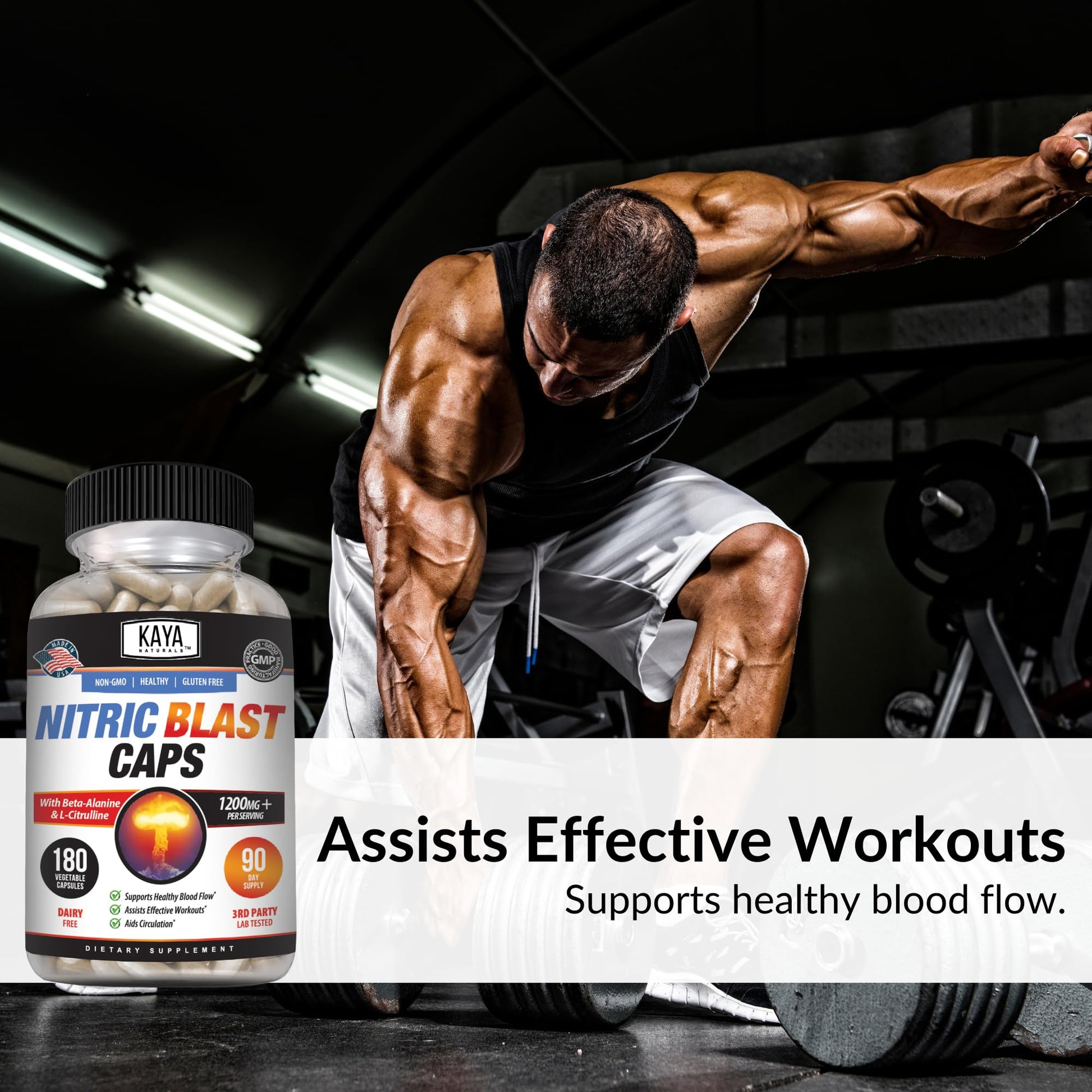Kaya Naturals - Nitric Blast Potent All-Natural Herbal Supplement for Maximum Health Benefits | Pre-Workout | Increased Energy | Improved Nighttime Performance (180 Count (Pack of 1)