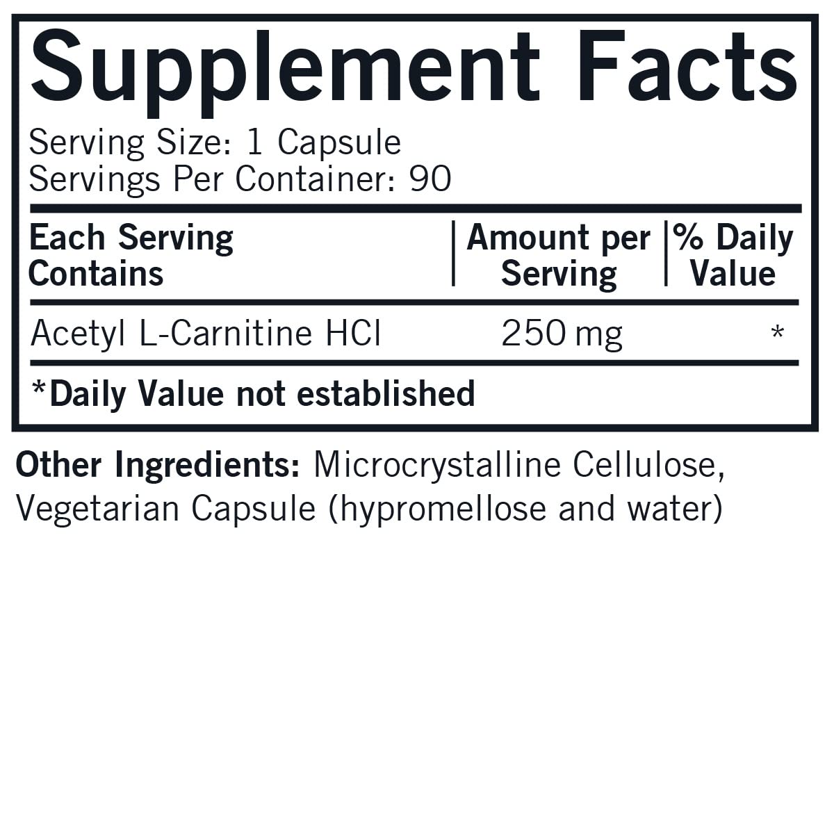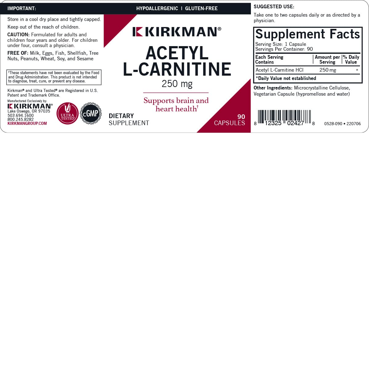 Kirkman - Acetyl L-Carnitine 250 mg - 90 Capsules - Supports Sustained Cellular Energy Production - Hypoallergenic