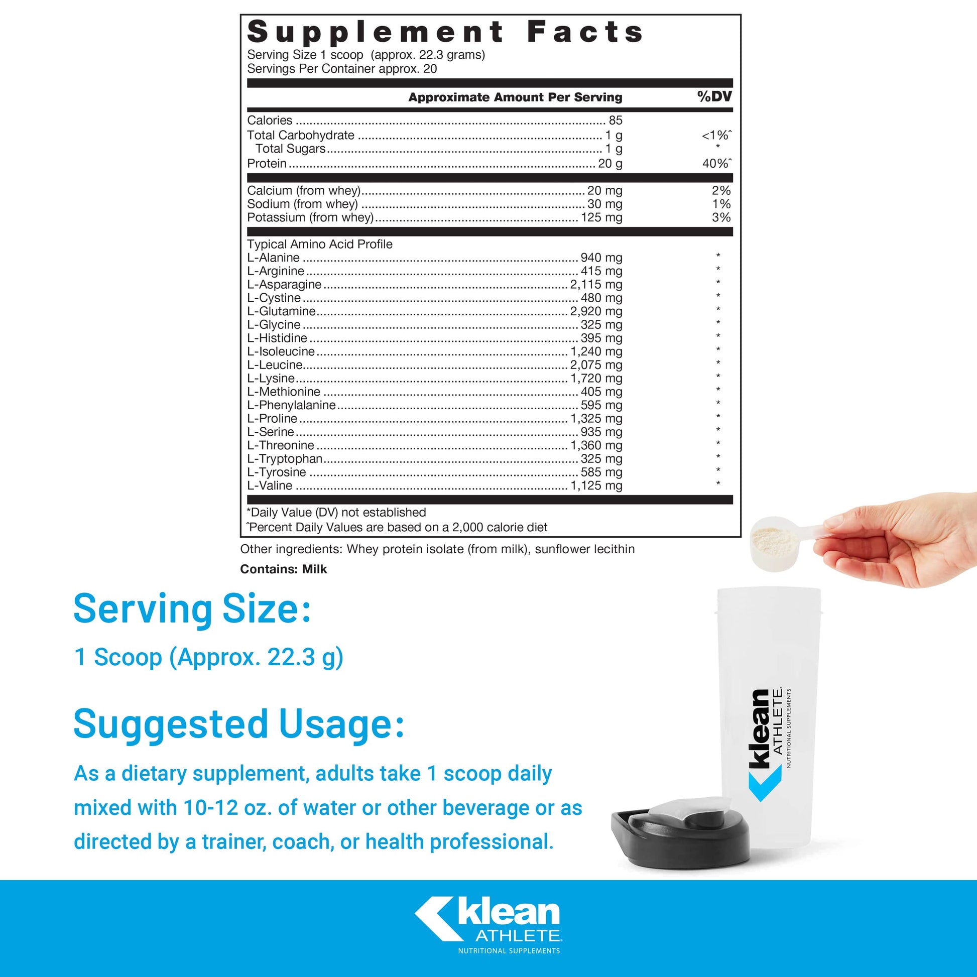 Klean ATHLETE Klean Isolate - Whey Protein Isolate - Daily Protein & Amino Acid - Intake for Muscle Integrity* - NSF Certified for Sport - 20 Servings - Unflavored