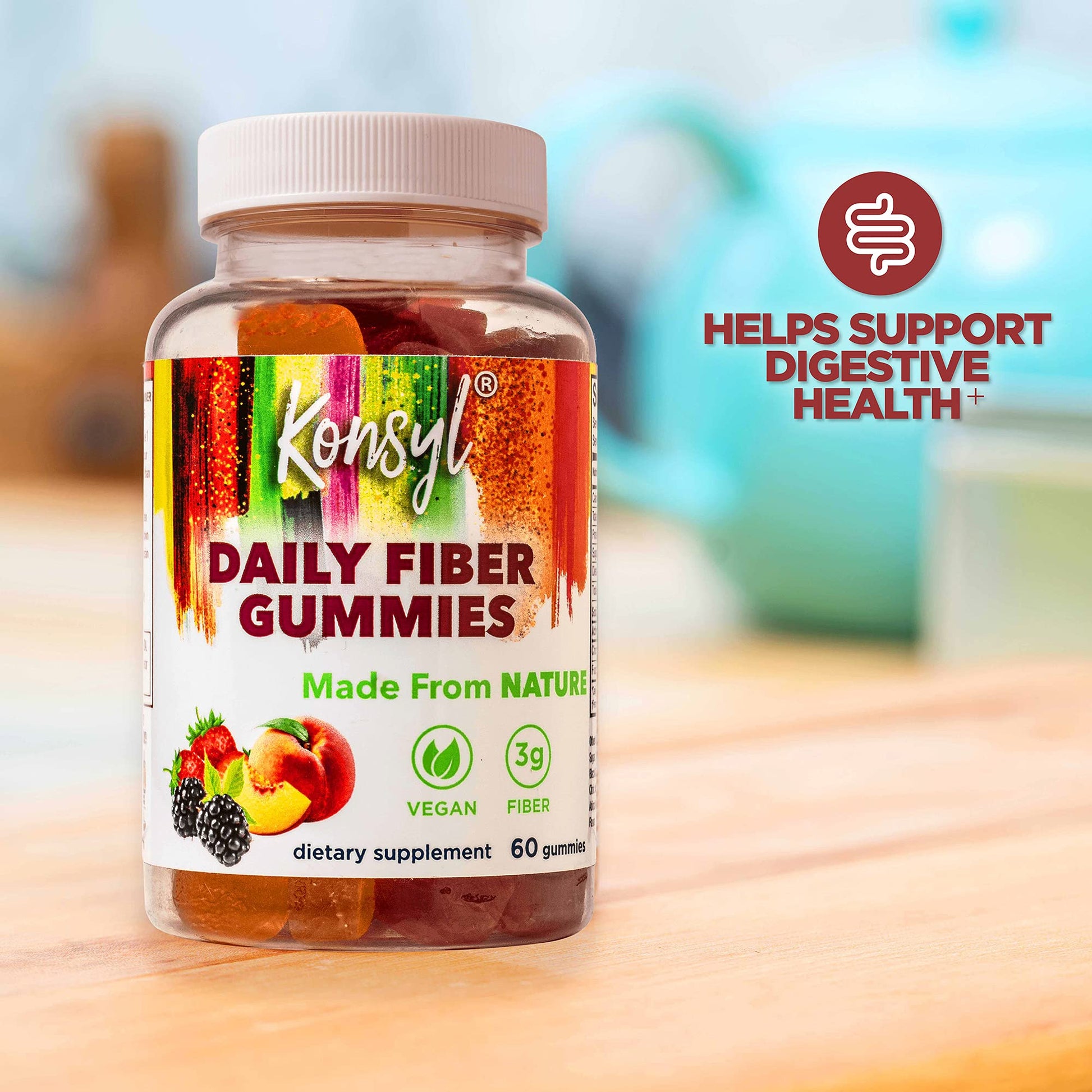 Konsyl Daily Fiber Gummies - Helps Support Digestive Health+ - Vegan Fiber Supplement Gummies for Adults - All-Natural Fruit Flavor (60 Count)