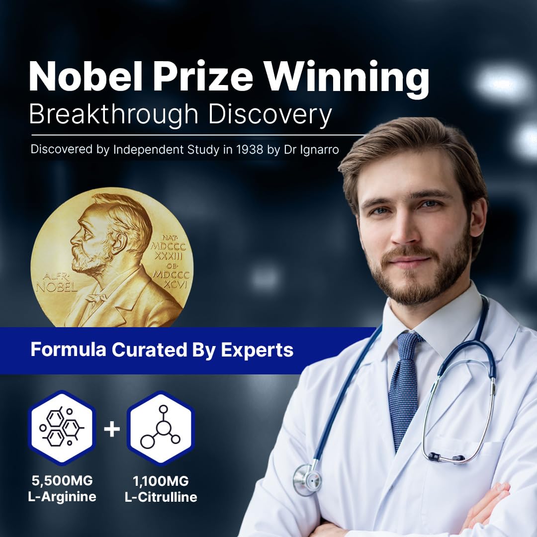 - BASED ON AN AWARD WINNING NITRIC OXIDE DISCOVERY: L-arginine Pro is formulated based on a Nobel Prize winning discovery breakthrough showing how nitric oxide supports cardiovascular health. L-Arginine Pro stands out with its high-potency blend of 5,500mg of L-Arginine and 1,100mg of L-Citrulline an effective combination that enhances nitric oxide production more than those that offer only L-Arginine.