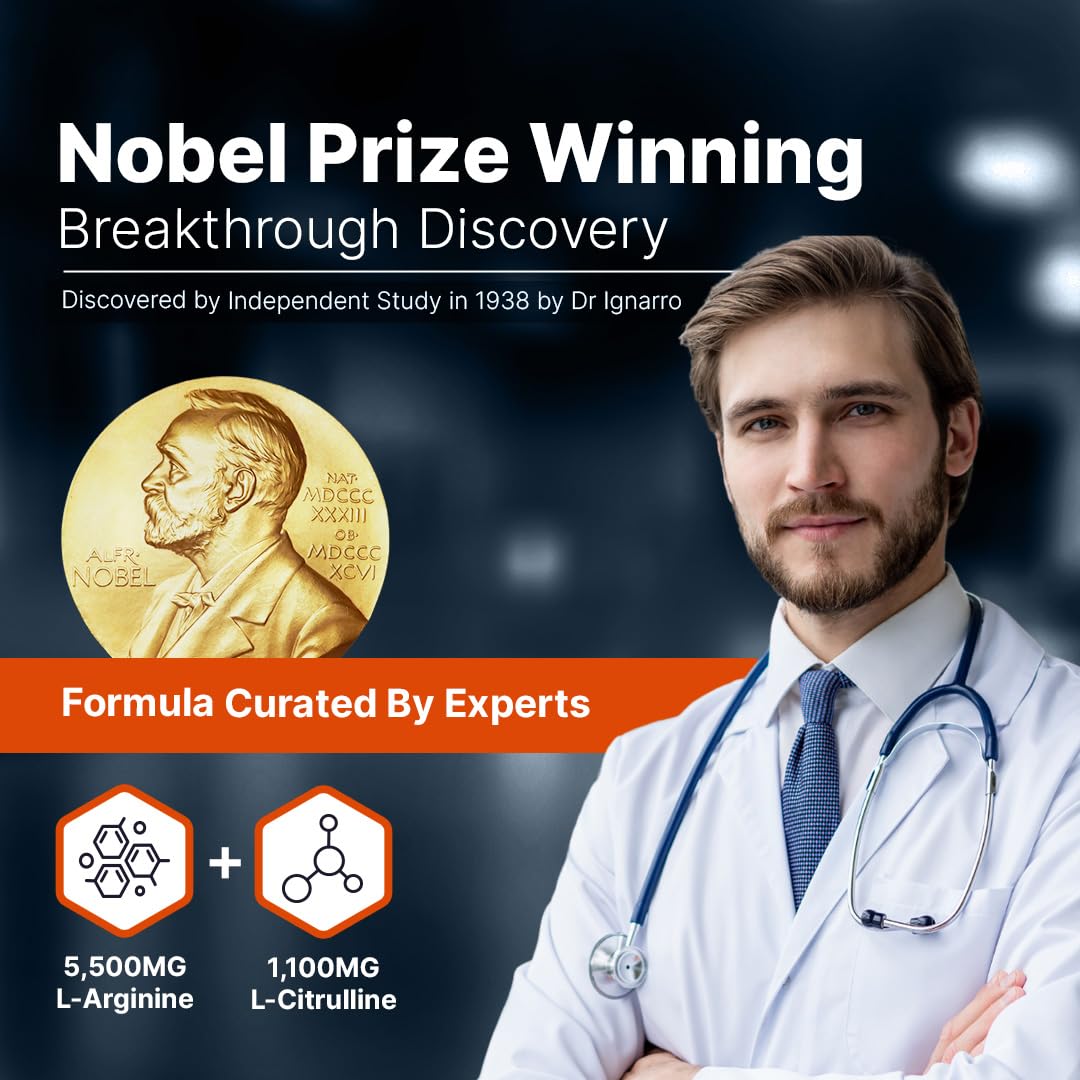 - BASED ON AN AWARD WINNING NITRIC OXIDE DISCOVERY: L-arginine Pro is formulated based on a Nobel Prize winning discovery breakthrough showing how nitric oxide supports cardiovascular health. L-Arginine Pro stands out with its high-potency blend of 5,500mg of L-Arginine and 1,100mg of L-Citrulline an effective combination that enhances nitric oxide production more than those that offer only L-Arginine.