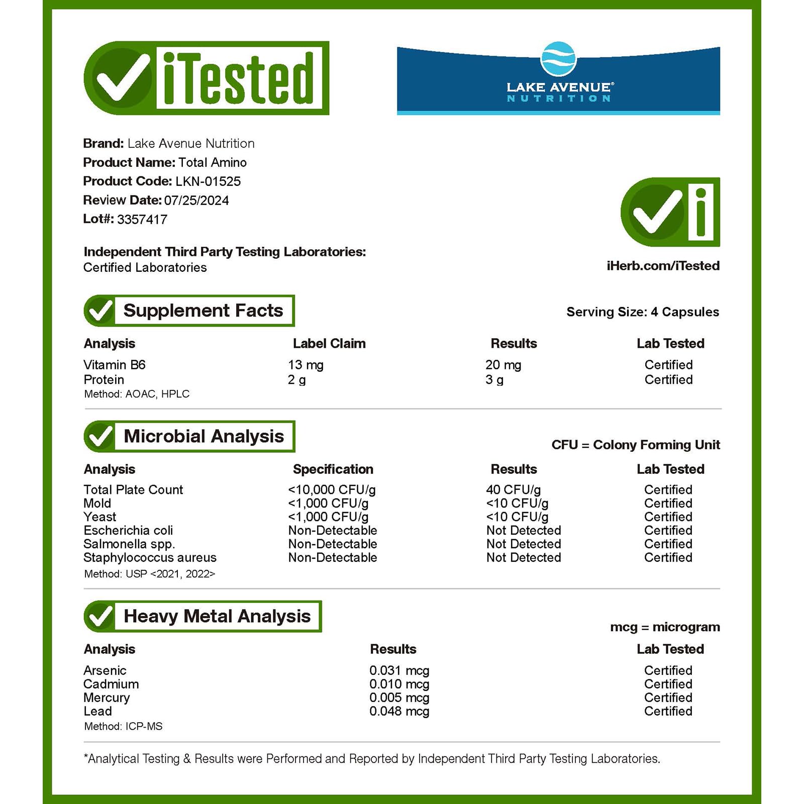 Lake Avenue Nutrition Total Amino, 240 Veggie Capsules