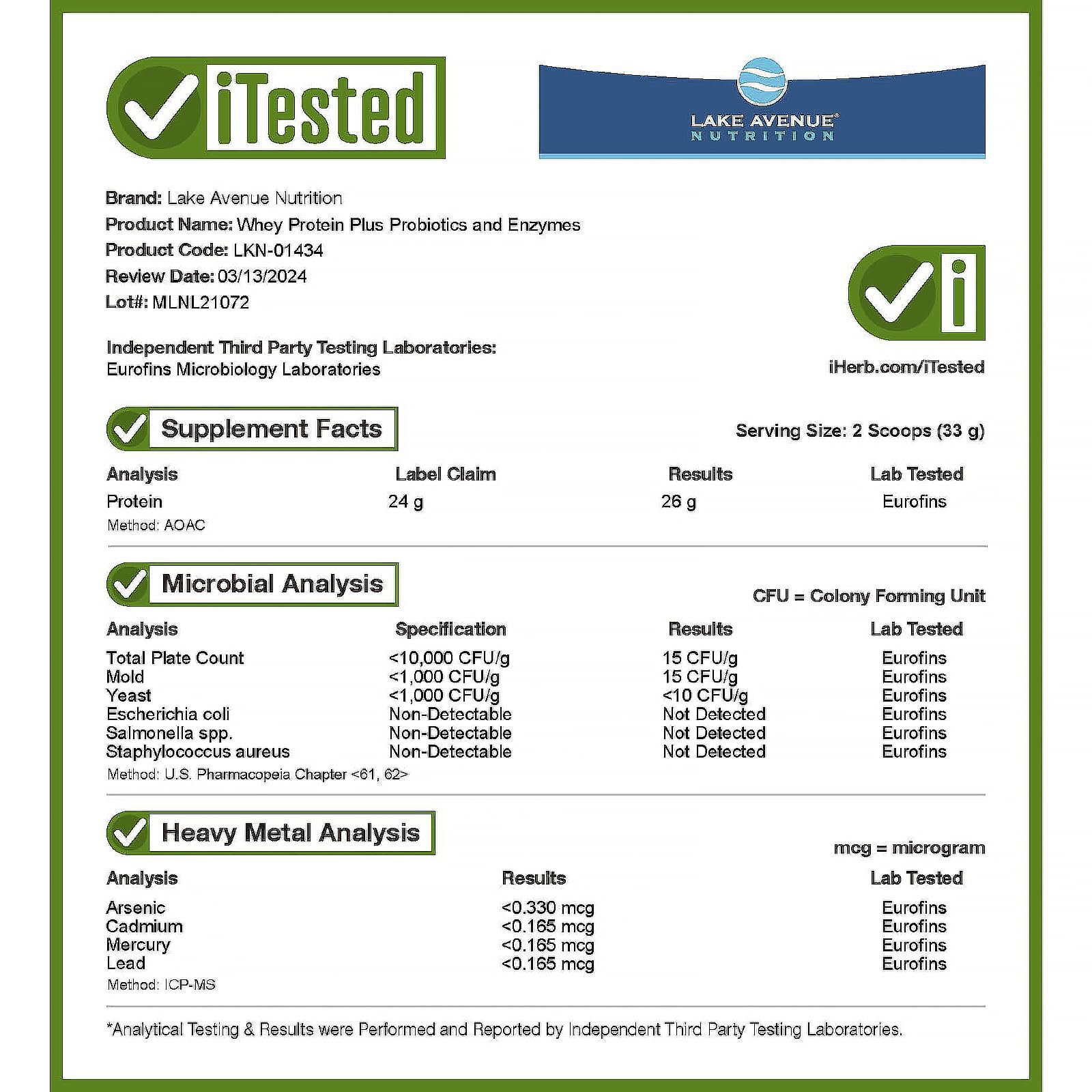 Lake Avenue Whey Protein Plus Probiotics and Enzymes, Unflavored, 5 lb (2.27 kg), Nutrition