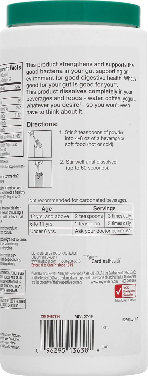 - GUT HEALTH - LEADER prebiotic fiber powder made with dextrin, designed to support good digestive health. Compare to Benefiber amount of prebiotic fiber.