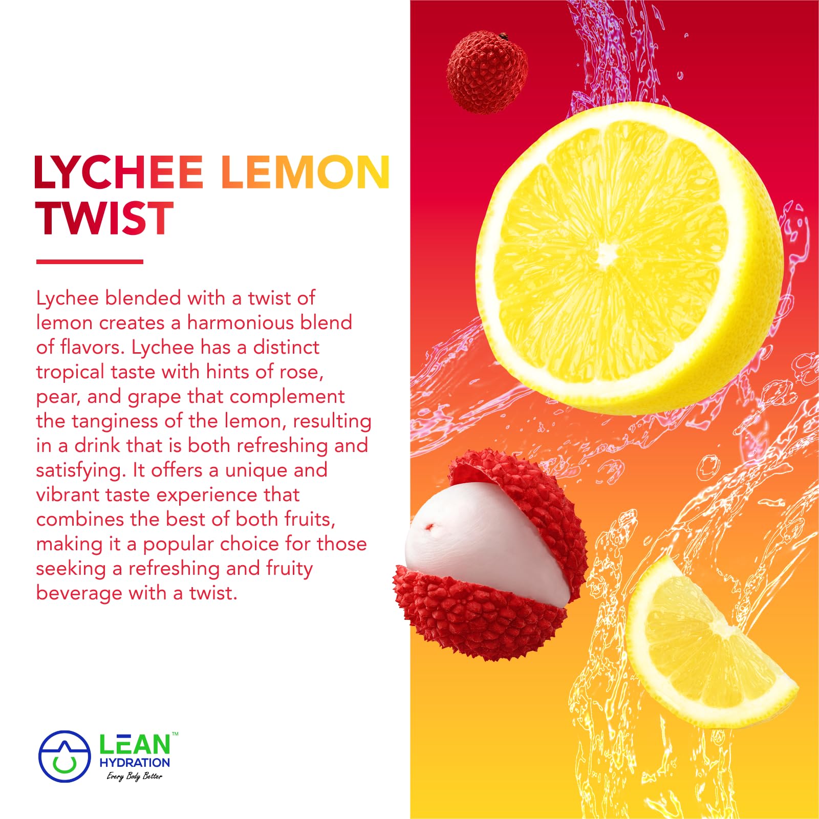 LEAN Hydration Daily Natural Electrolyte Packets Drink Mix | Zero Calories, Zero Sugar Plus Vitamins, Minerals & More | 16 ct (Lychee Lemon Twist)