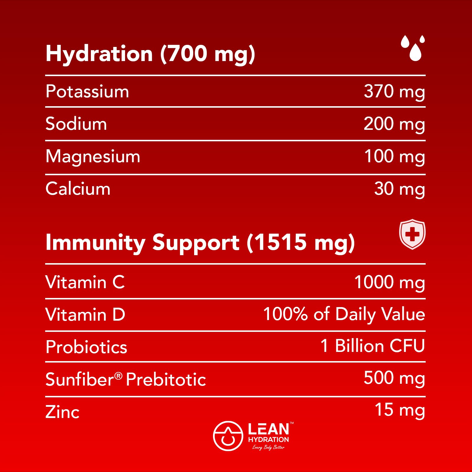 - Immune Support: Formulated with natural immune-boosting ingredients like vitamin C and zinc to strengthen your body's defenses. Advanced Hydration: Stay properly hydrated with essential electrolytes while supporting your immune system with every sip. Clean Energy: Enjoy sustained energy without the crash, thanks to natural ingredients like B-vitamins.