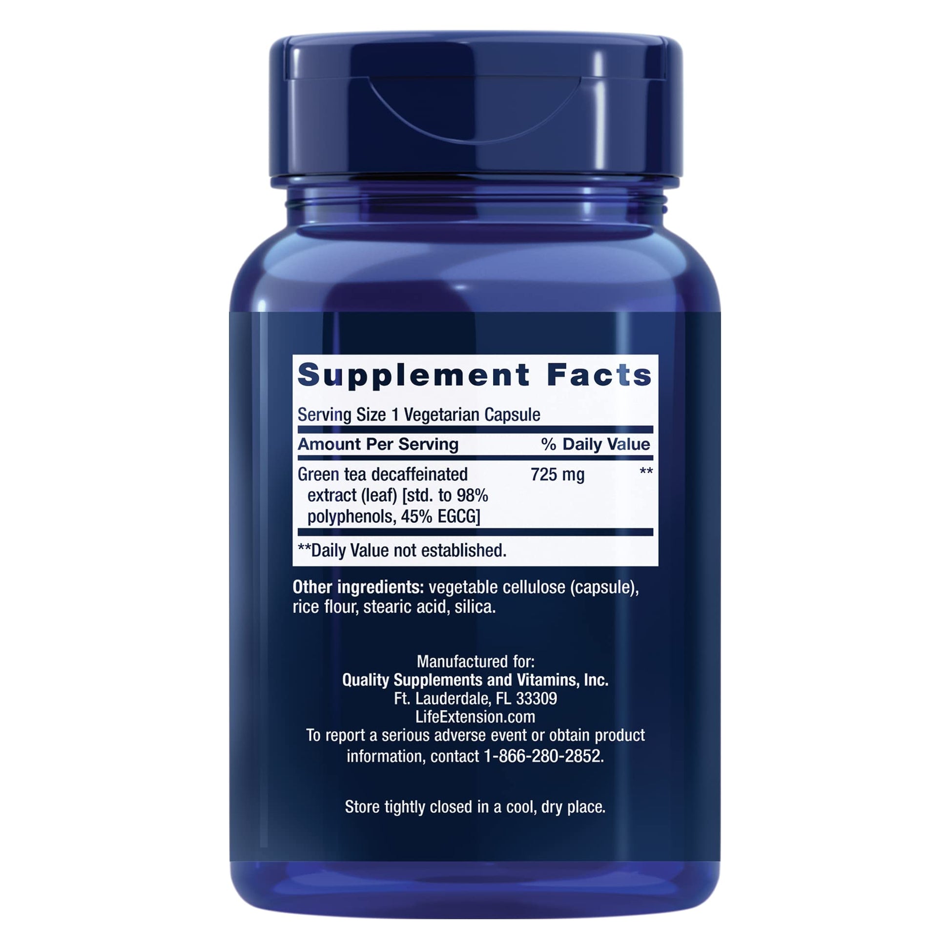 Life Extension Decaffeinated Mega Green Tea Extract - Polyphenol-Rich, Cell Health, Heart Health, Brain Health, Antioxidant Protection - Non-GMO, Gluten-Free, Vegetarian - 100 Capsules