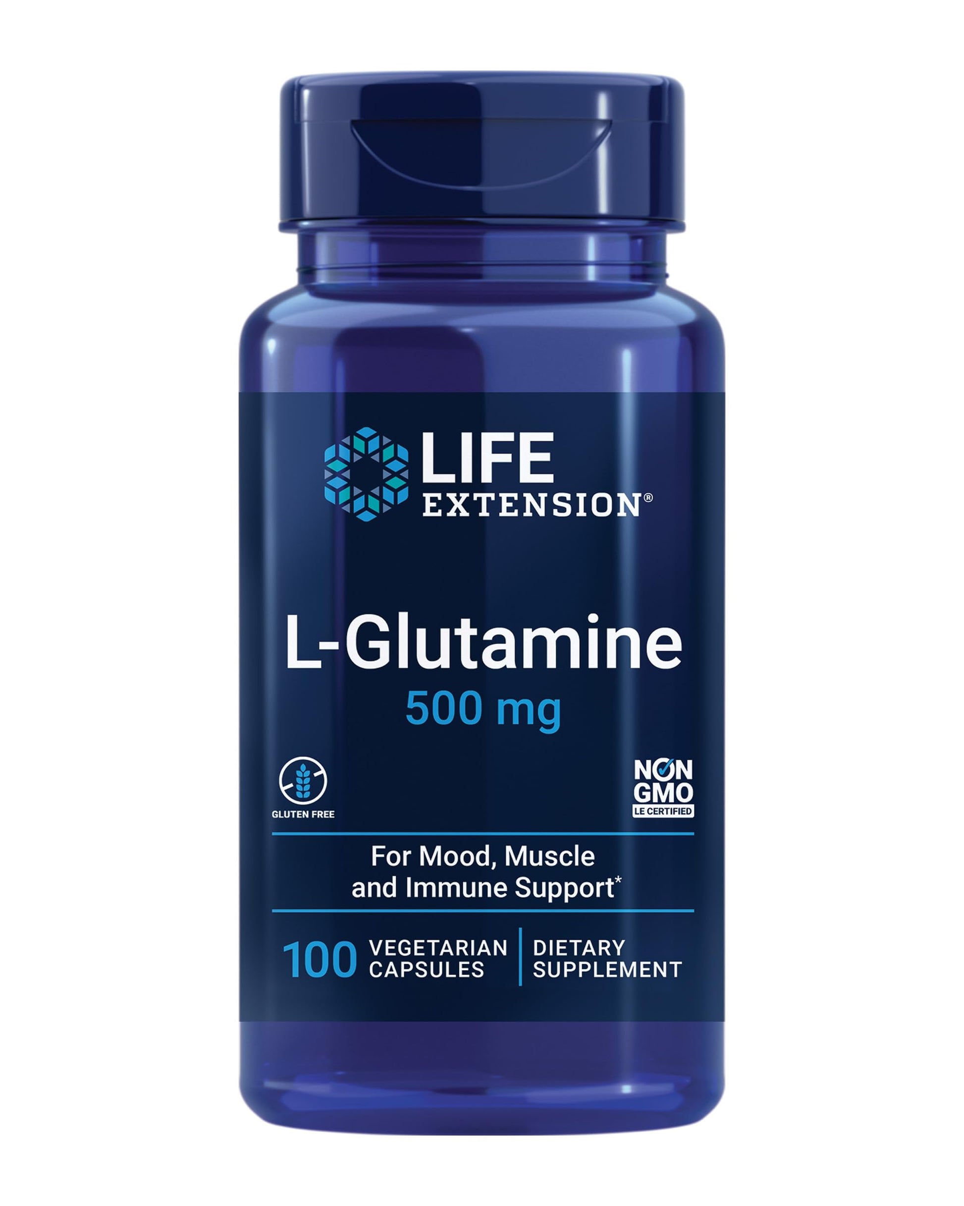 Life Extension L-Glutamine, 500 mg L-glutamine, Amino Acid, Supports Muscle Health and Immune Health, Gluten-Free, Non-GMO, 100 Vegetarian Capsules