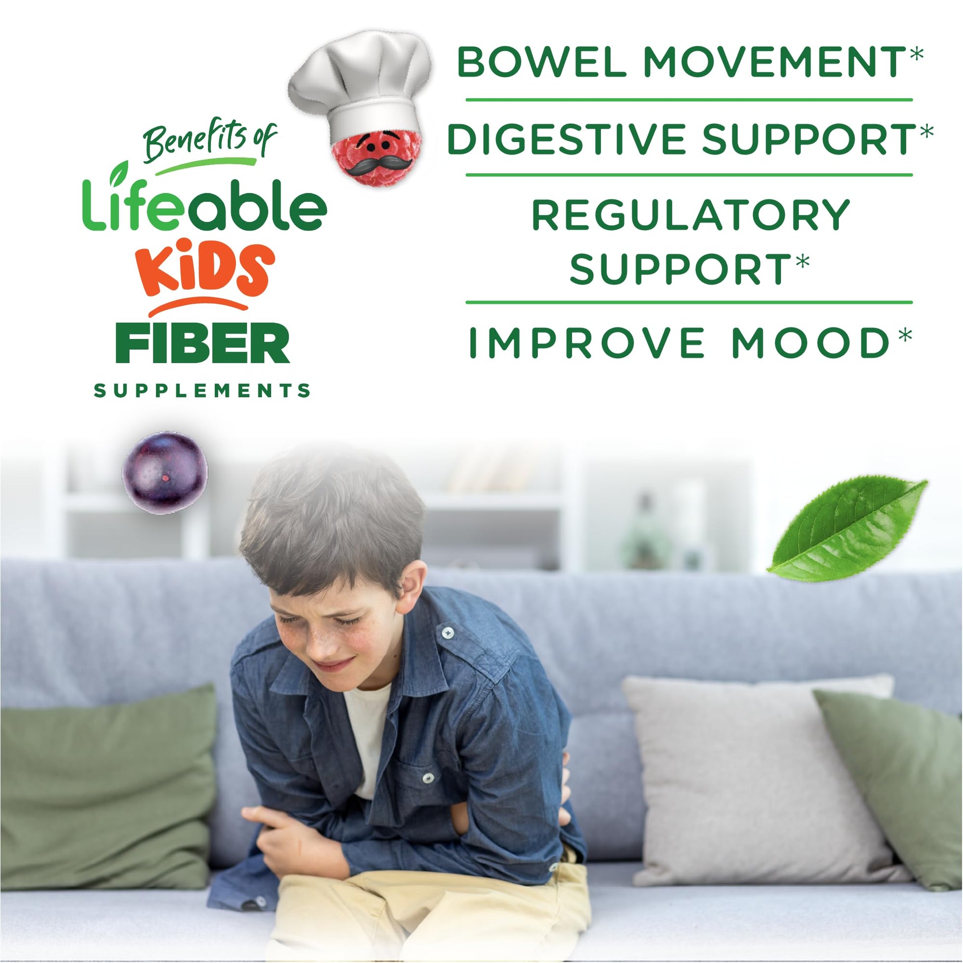 Lifeable Sugar Free Prebiotic Kids Fiber Gummies | 4g Fiber for Kids | Great Tasting Vegetarian Fiber Supplements for Kids | for Digestive Health | Fiber Gummies for Kids | 90 Probiotics Gummies