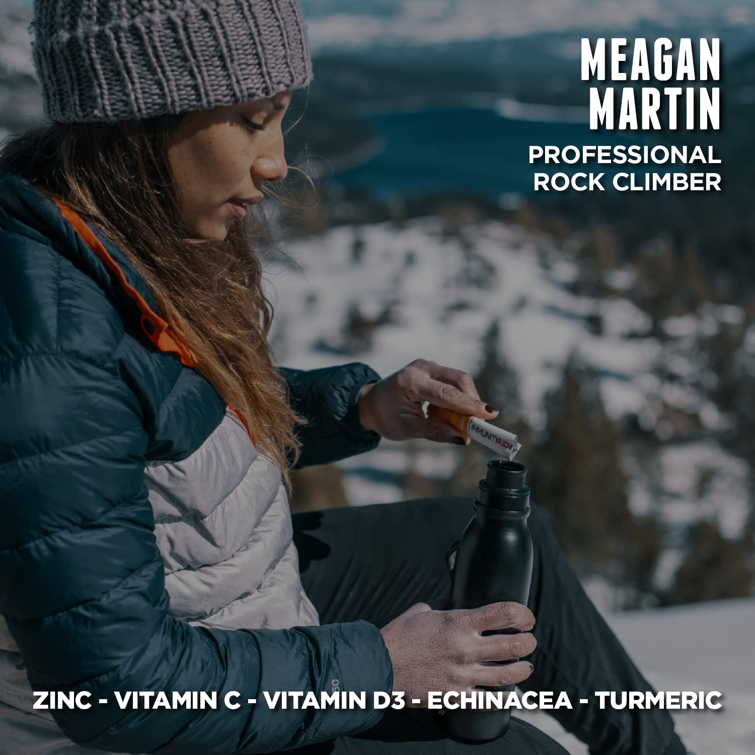 - 20x more vitamin C than one orange + Echinacea, Zinc, Antioxidants, Astragalus Root + key vitamins (A & D) for overall immune support. Each packet also contains Turmeric to help reduce mild inflammation from everday stress.