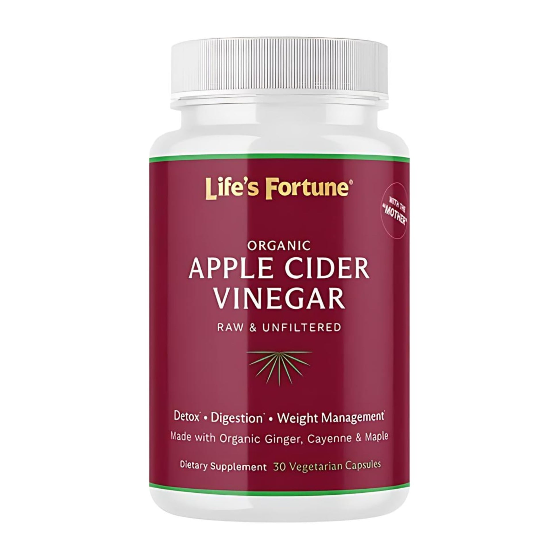 Life's Fortune Organic ACV Apple Cider Vinegar Capsules 700mg with Mother Supplement, Support Healthy Digestion with Ginger & Cayenne Pepper (30 Count (Pack of 1))