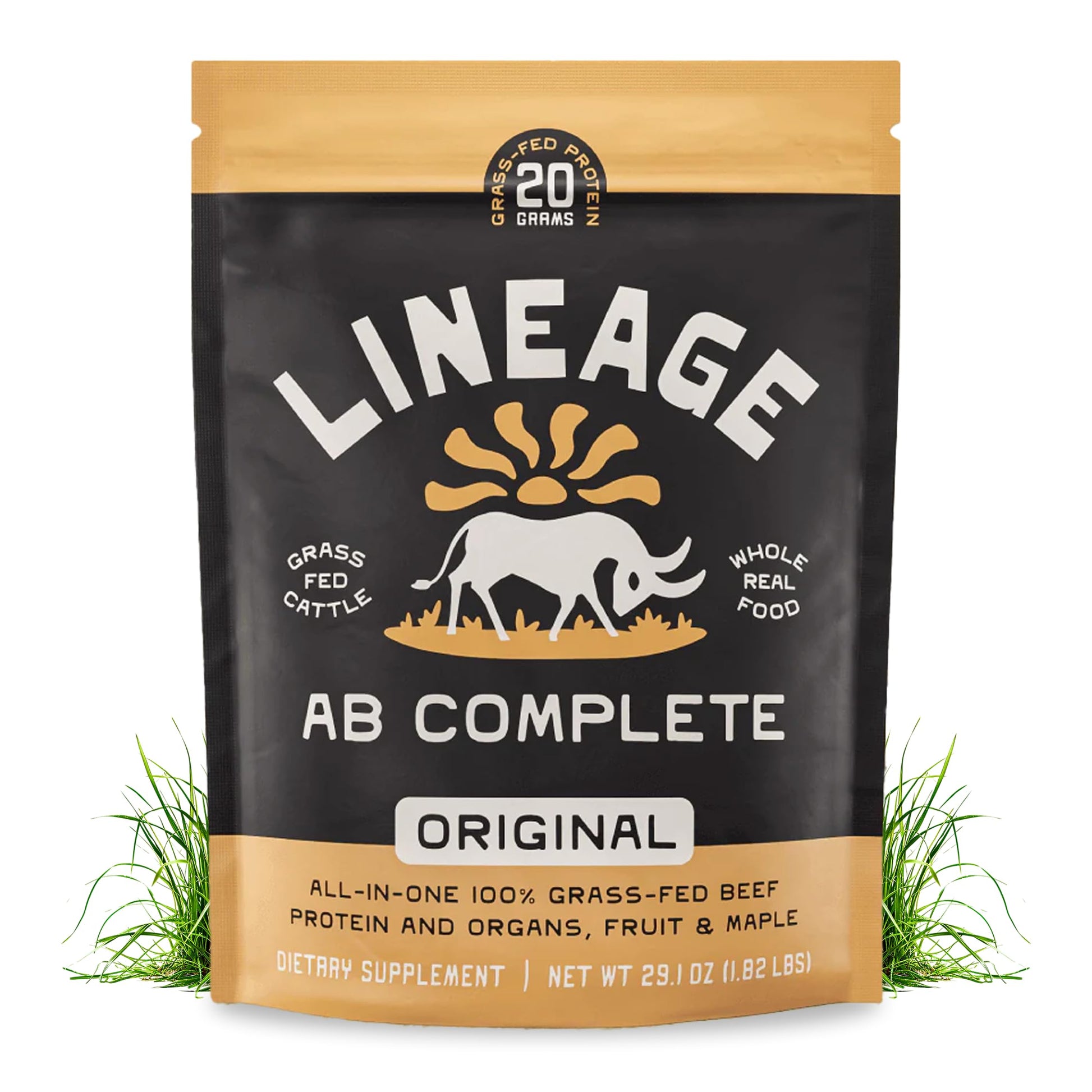 Lineage Provisions Grass Fed Beef Protein Powder - Original Flavor - Nose to Tail Animal Protein Powder Including 100% Grass Fed and Finished Beef Organs, Colostrum, and Fruit - 1.8 lbs (30 Servings)
