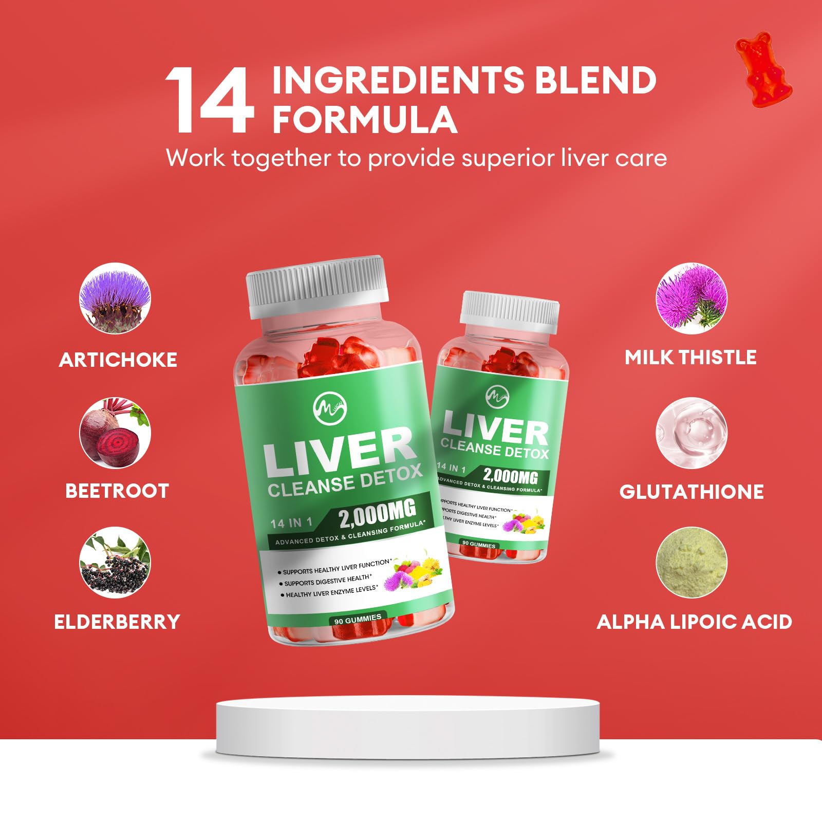 - Natural Herbal Formula : To maximize the use of plants, our liver detox gummies contain milk thistle (80% Silymarin), glutathion, alpha lipoic acid, dandelion root, artichoke, chicory root, beet root, yarrow and burdock root, which are nature's most potent material for cleanse, detox & repair.