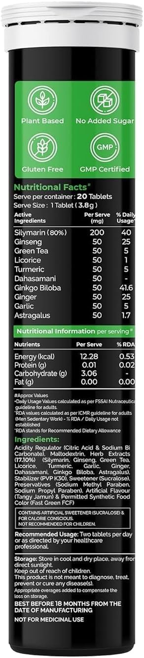 - CLINICALLY RESEARCHED INGREDIENTS: Plant-based therapeutic ingredients which are clinically validated initiate The Detox Process led by Milk Thistle (Silymarin). Additionally, a unique combination of 9 herbs such as Ginseng, Green Tea, Licorice, Turmeric, Garlic, Ginger, Astragalus, Dahasamani and Gingko Biloba accelerates The Detox Process