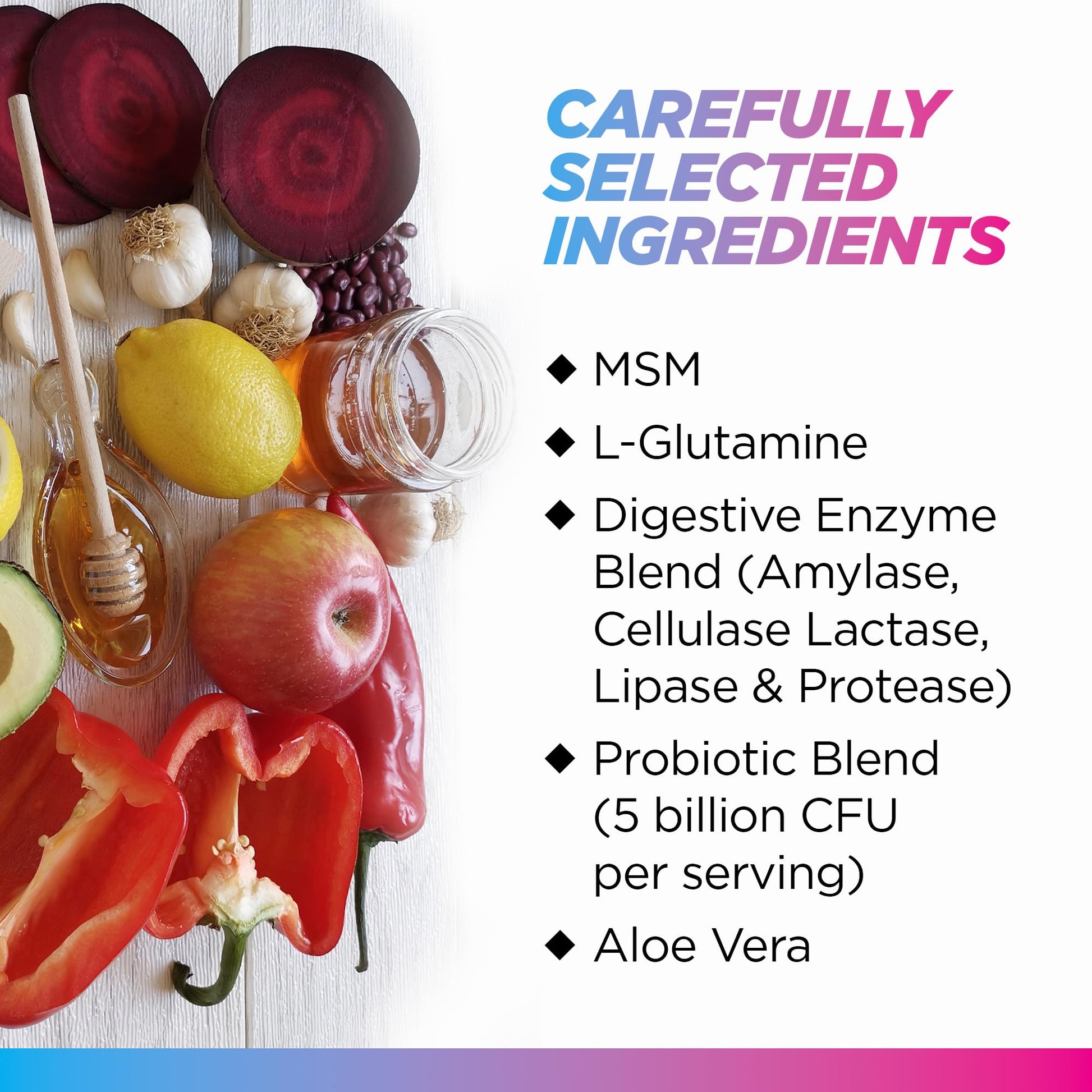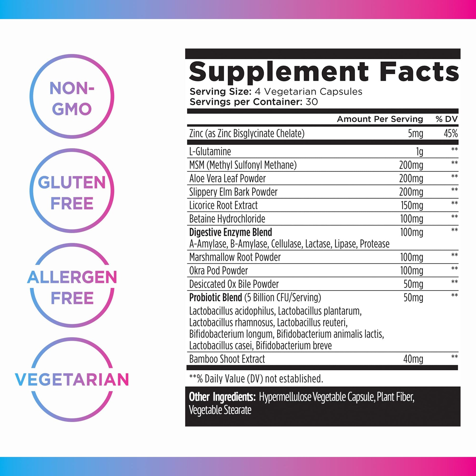- Powerful 13-in-1 Formula: Our GI Support pills contain natural ingredients like Slippery Elm Powder, Aloe Vera, Licorice Root, Marshmallow Root, and Okra Pod, which help soothe stomach discomfort. It's also formulated with a digestive enzyme blend (Amylase, Cellulase, Lactase, Lipase, and Protease) and a probiotic blend to help break down foods and better absorb nutrients.