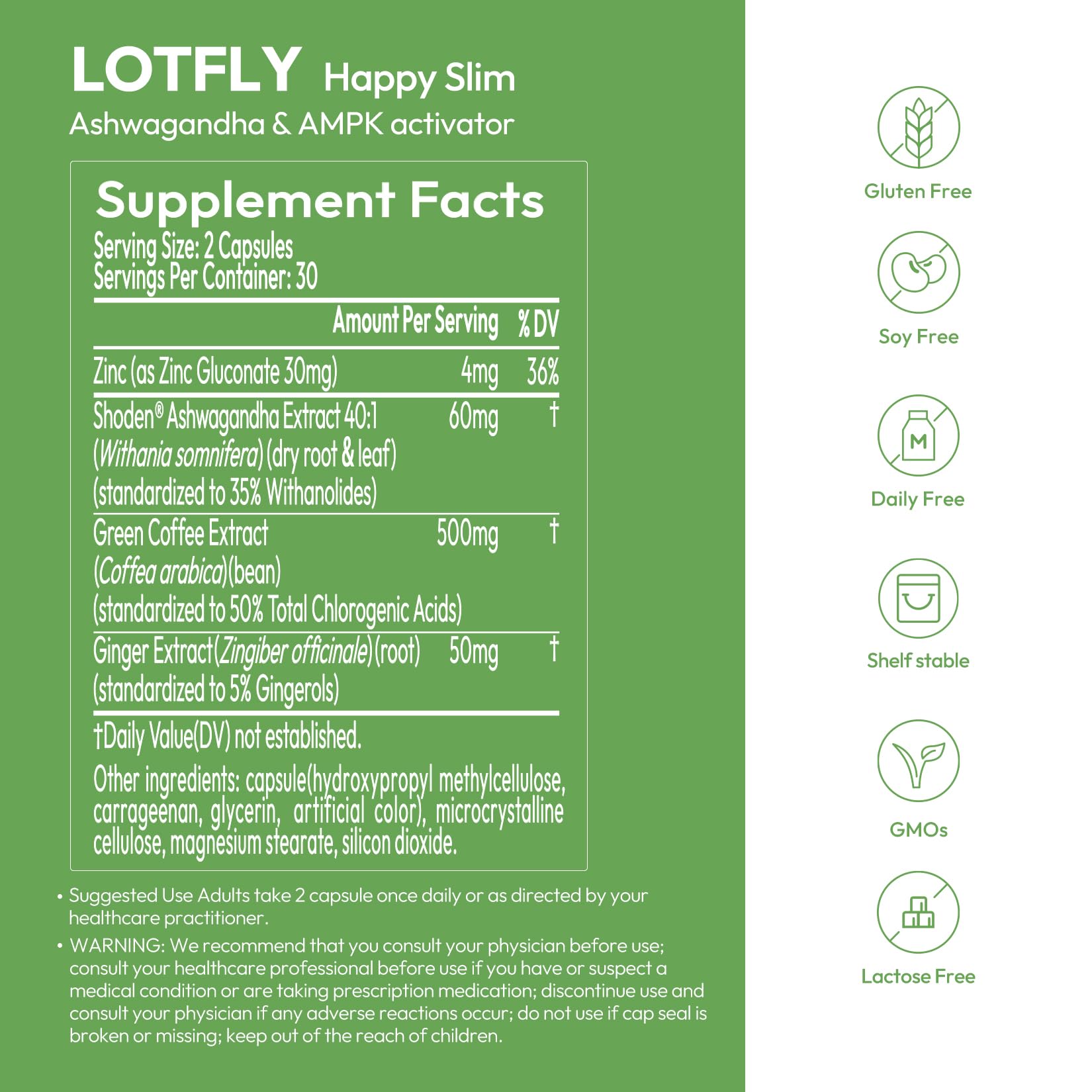 LOTFLY Happy Booster - 30-Day Colon Cleanse Detox for Women & Men | Advanced Gut Support with Ashwagandha, Green Coffee Bean, Ginger Extract | Non-GMO Capsules for Bloating Relief & Digestive Health