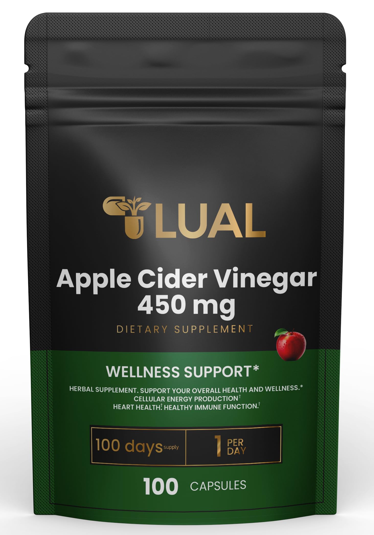 - Convenient Daily Supplement: LUAL Apple Cider Vinegar Capsules provide 450 mg of apple cider vinegar per serving for easy daily intake.