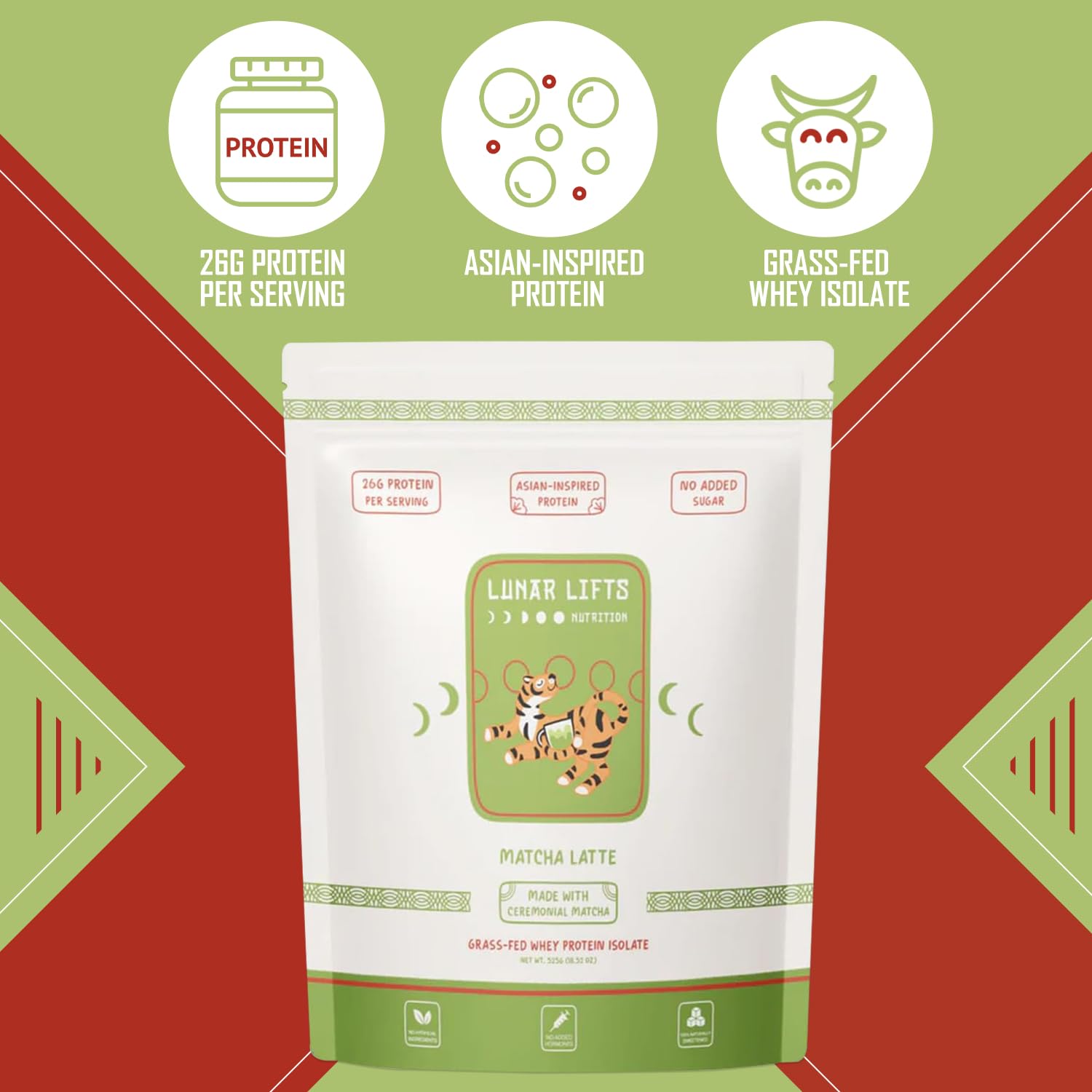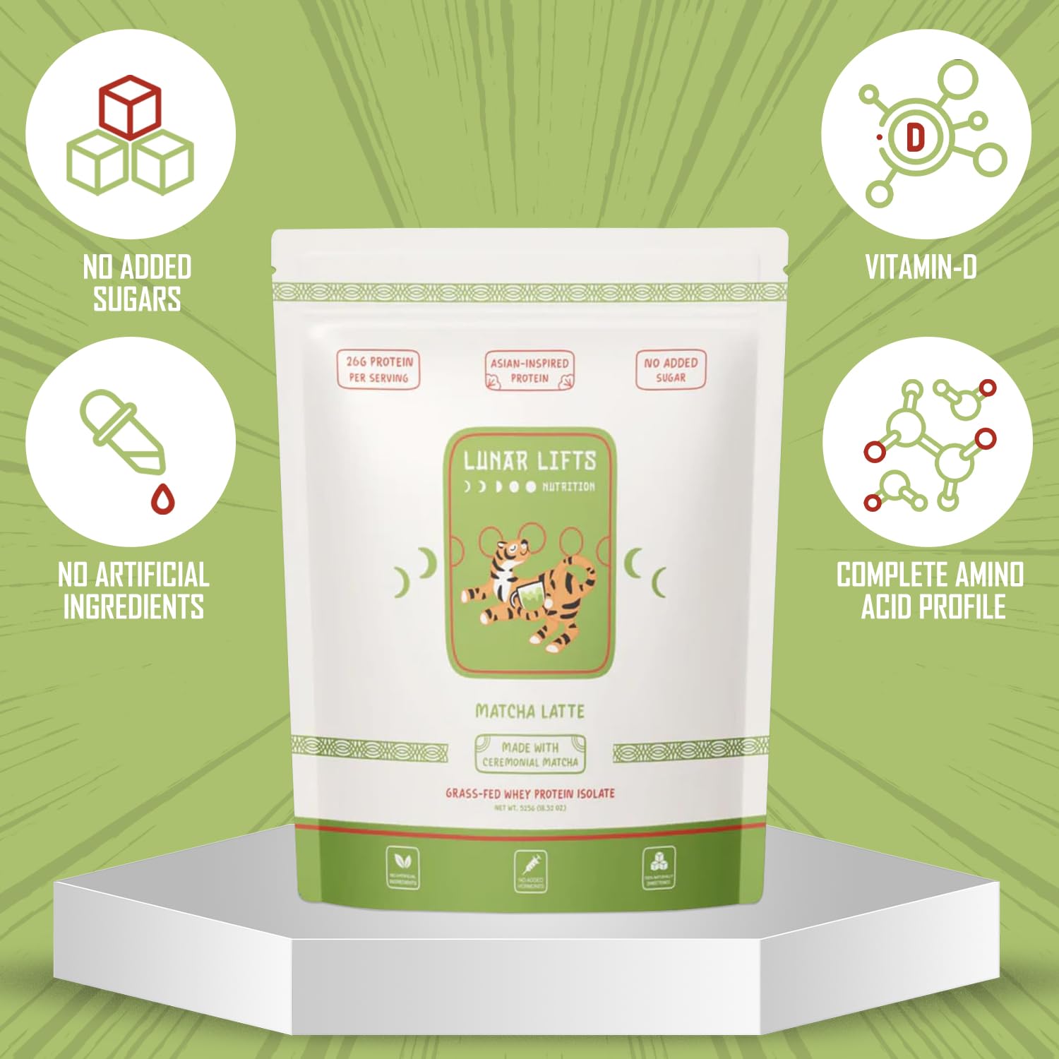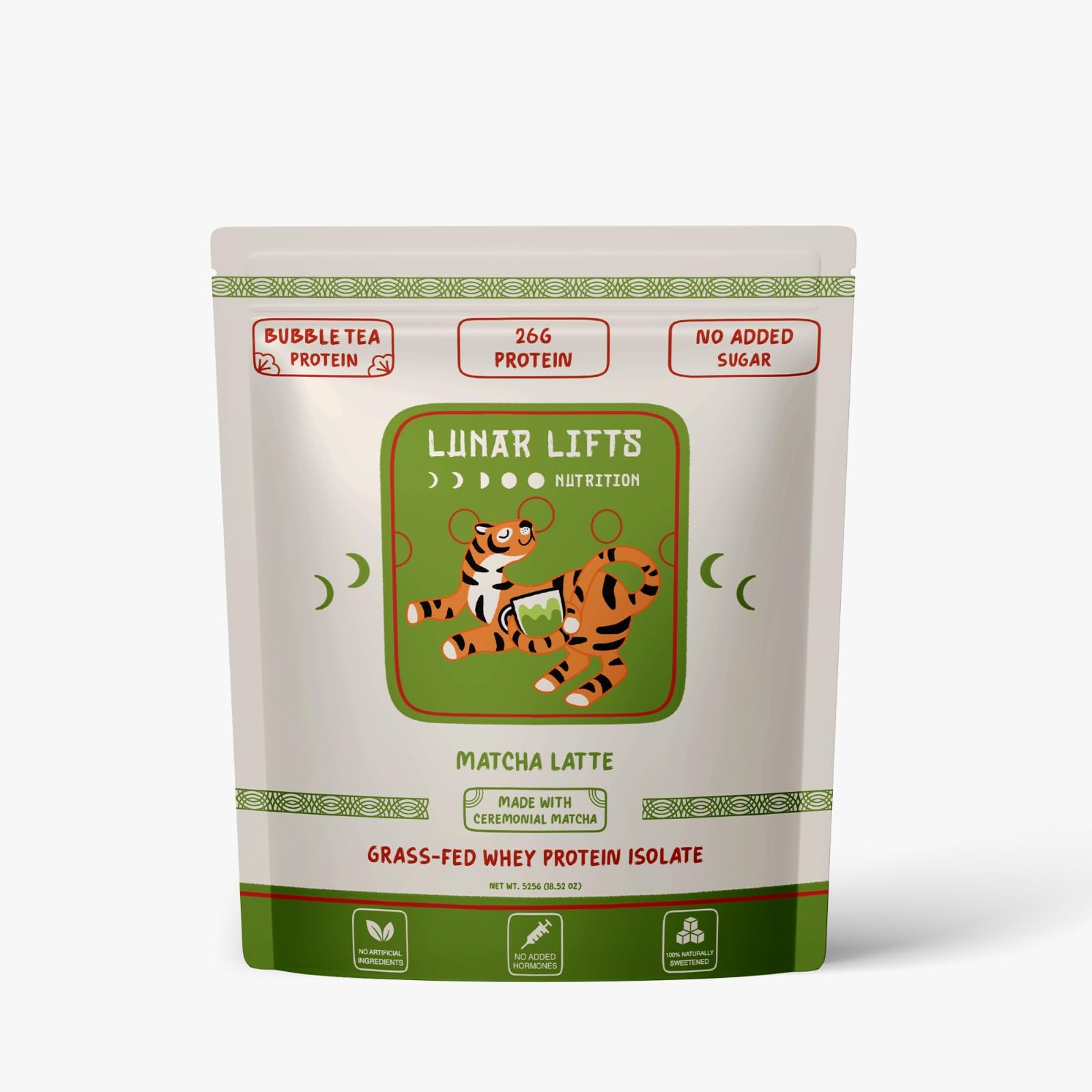 Lunar Lifts Nutrition Matcha Latte - Boba Tea Protein Powder | 26g Whey Protein Isolate Matcha Powder | Ceremonial-Grade Matcha Bubble Tea Protein Powder | No Added Sugar & Artificial Ingredients