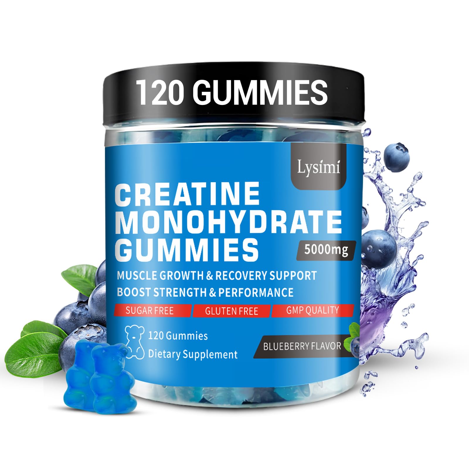 Lysimi Creatine Monohydrate Gummies 5000mg for Men & Women, Creatine Monohydrate for Muscle Strength, Muscle Builder, Energy Boost, Pre-Workout Supplement, Blueberry Flavor, 120Count