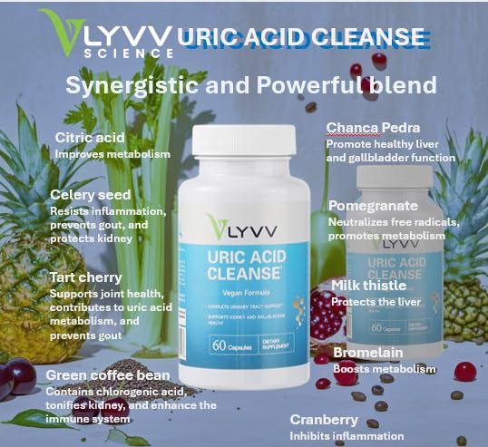 - LYVV Uric Acid Cleanse supports joint health, helps maintain uric acid levels within a normal range, and aids in metabolizing excess uric acid in the body