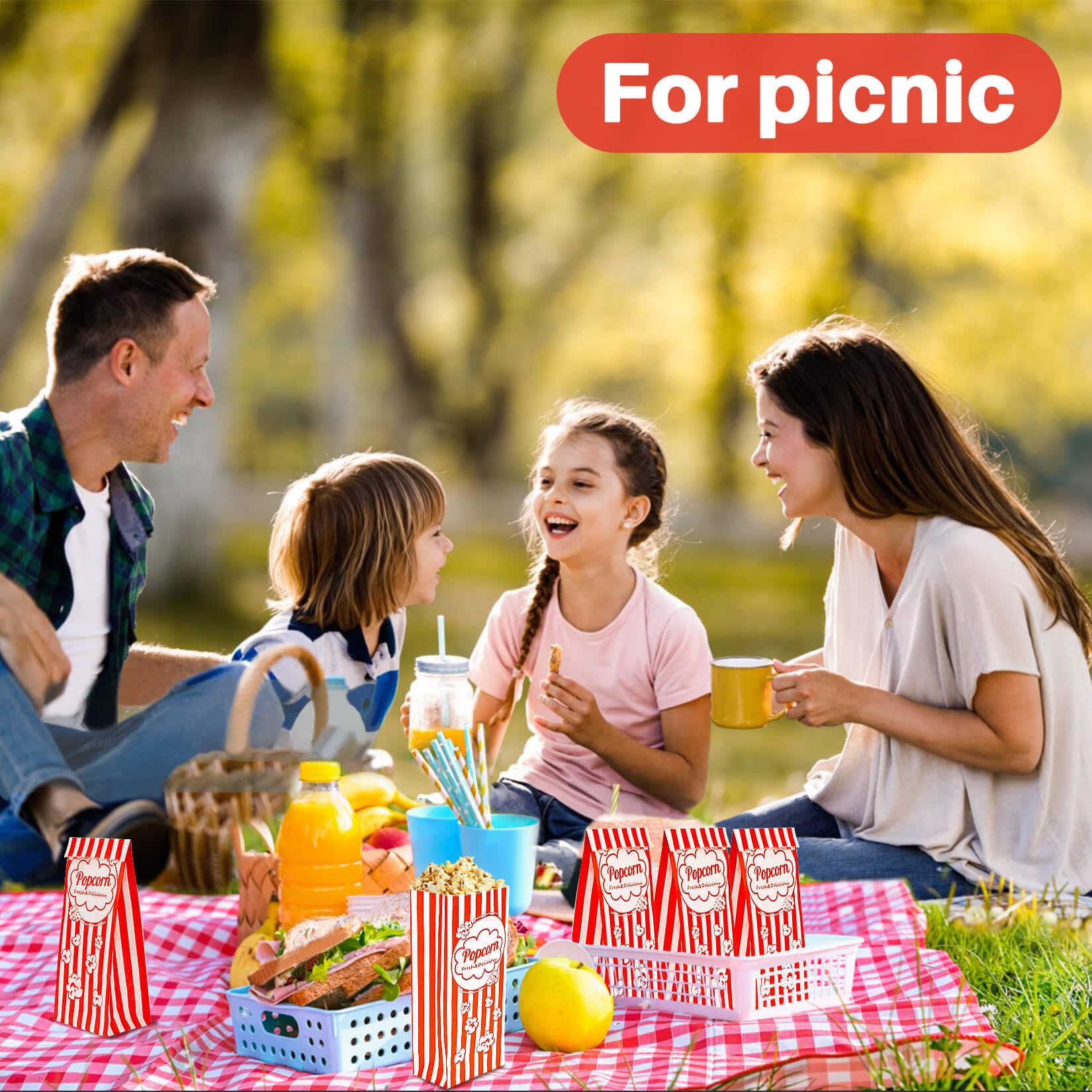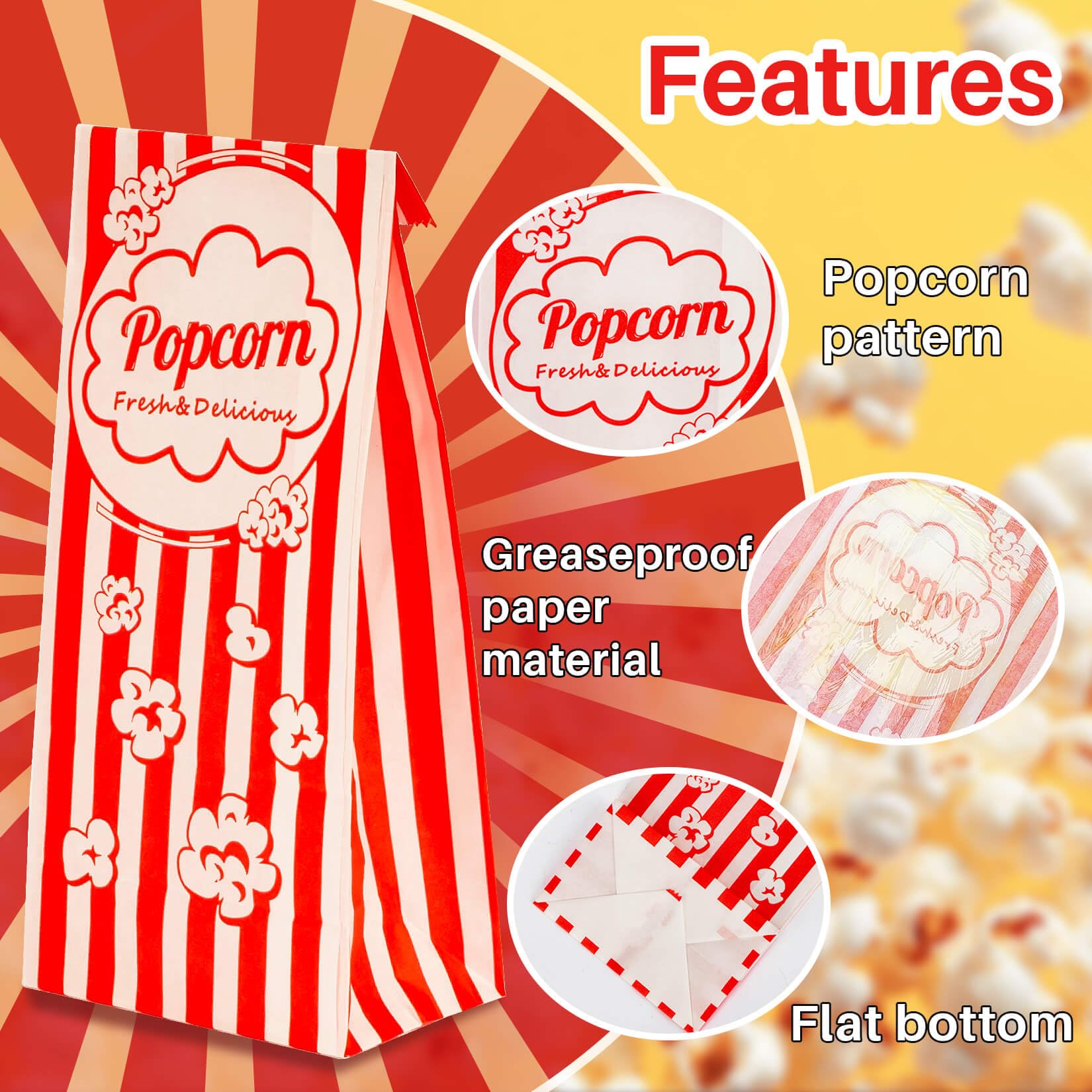 MAQIHAN 50 Popcorn Bags Individual Servings Flat Bottom Paper Popcorn Food Bags Party Pop Corn Sleeves Bulk Carnival Halloween Snack Packs Gift Favor Treat bolsas para palomitas Movie Night Supplies