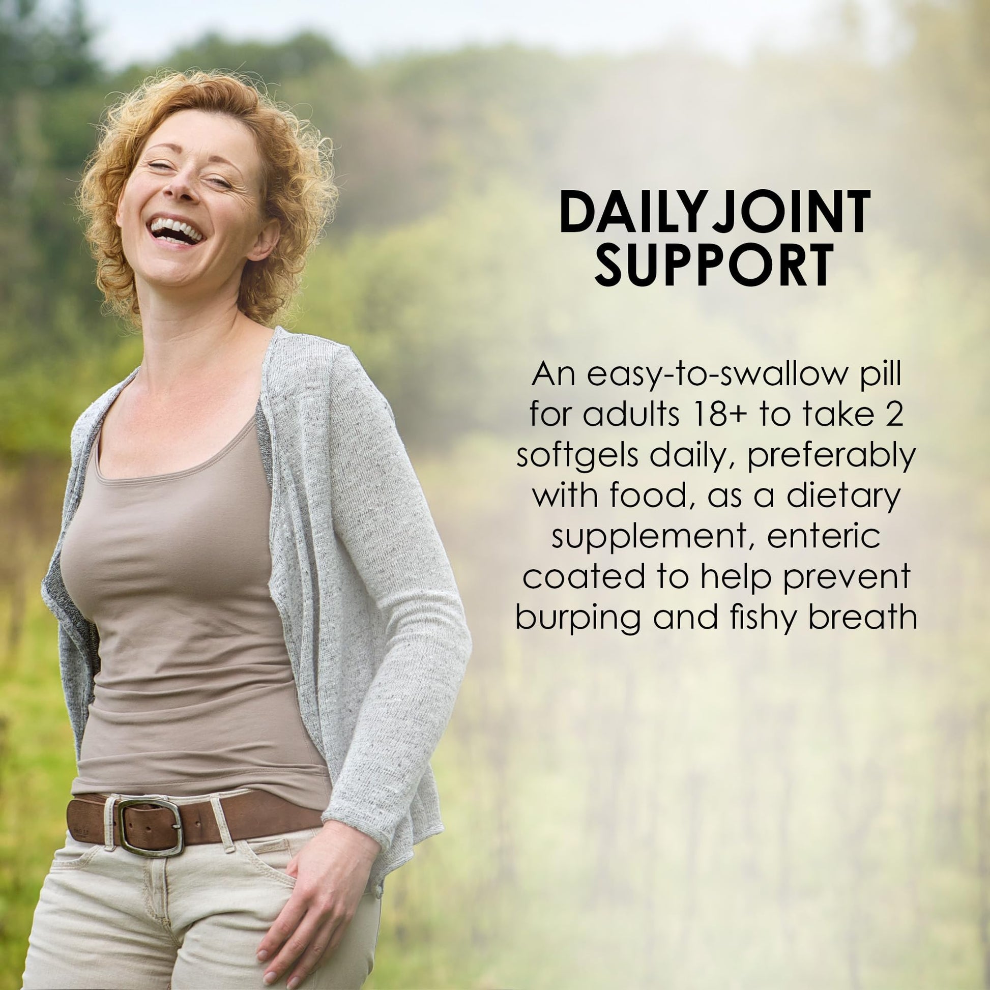 - DAILY JOINT SUPPORT: An easy-to-swallow pill for adults 18+ to take 2 softgels daily, preferably with food, as a dietary supplement, enteric coated to help prevent burping and fishy breath