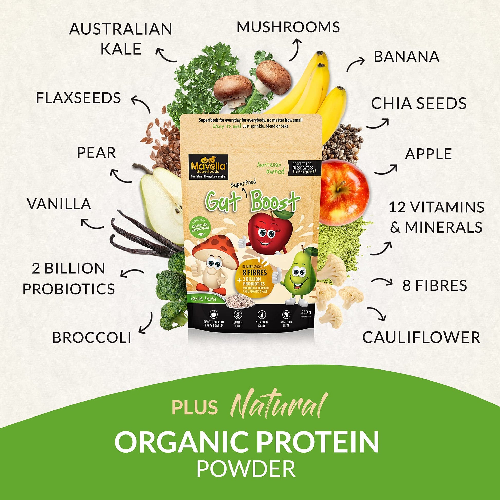 Mavella Kids Probiotic Powder Gut Boost - Daily Digestive & Immune Support with Fiber for Children Toddlers, Vanilla Flavored Fiber Supplement, Easy Mix for Constipation & Gut Health 3.52oz (100g)