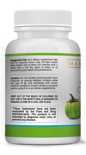 Maximum Slim 100% Pure Garcinia Cambogia Supplement - HCA Extract - Weight Support Formula for Men & Women - Non-GMO, Gluten Free - 60 Capsules