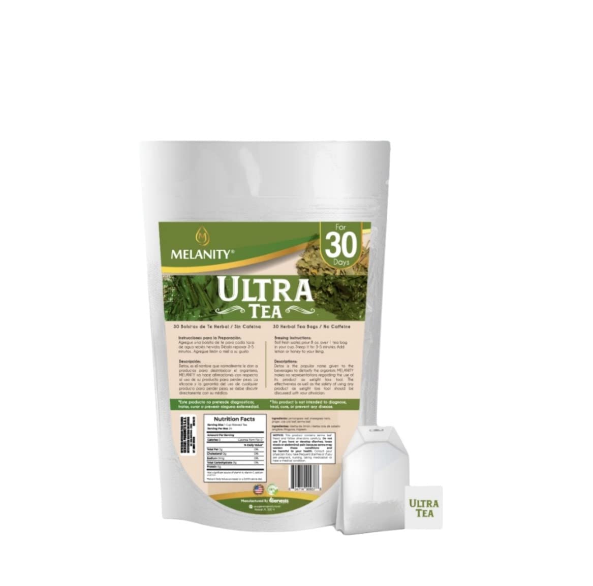 Melanity Detox Ultra Slim Tea 100% Naturals Herbs for Body Cleansing Suppress Appetite & Speed Up Metabolism Lose Weight Naturally No Caffeine Am Pm Metabolism Burn Fat 30 Bags