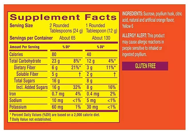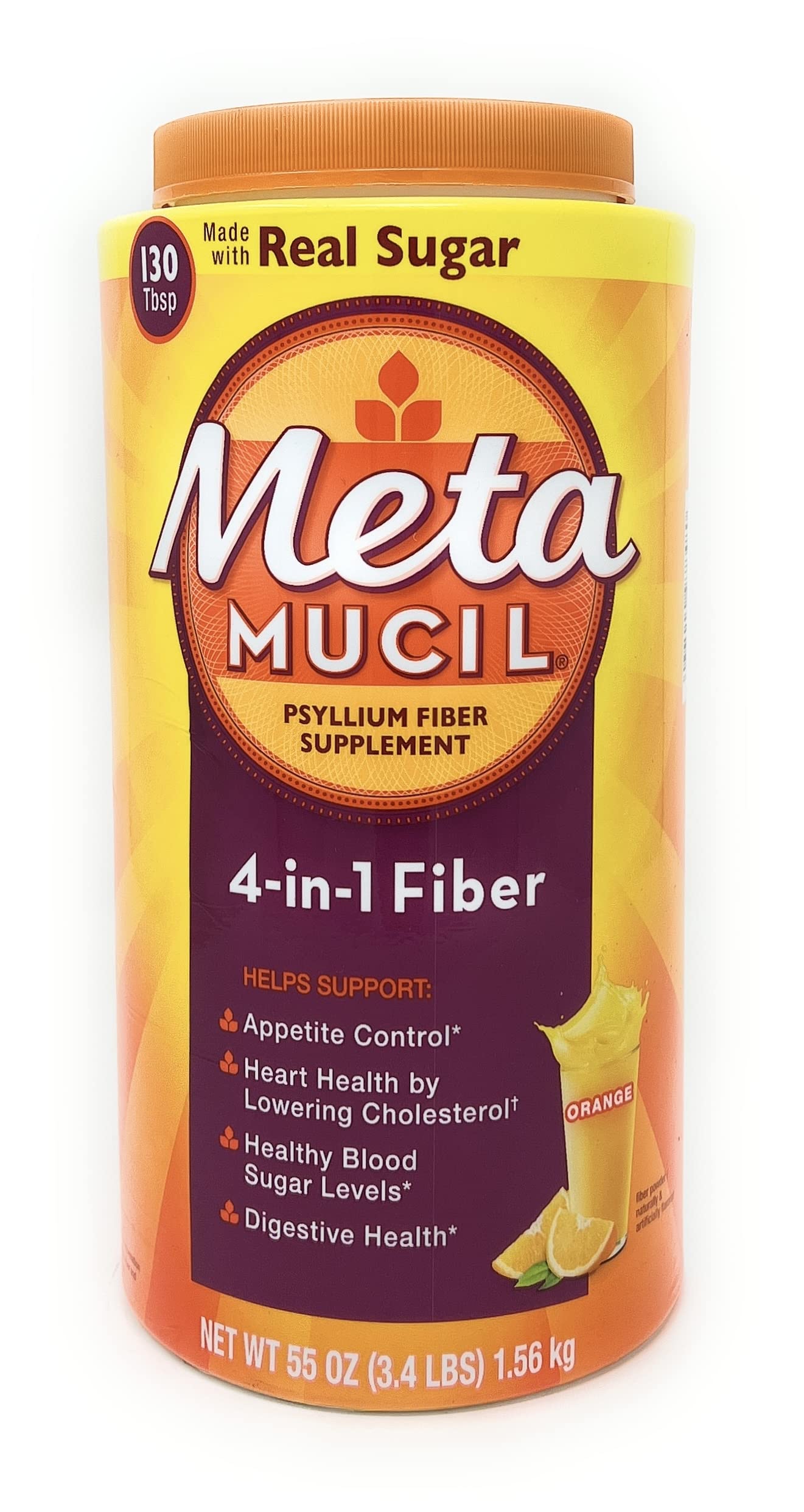 - Metamucil Fiber 4-in-1 Psyllium Fiber Supplement Powder with Real Sugar, Orange (55 oz)