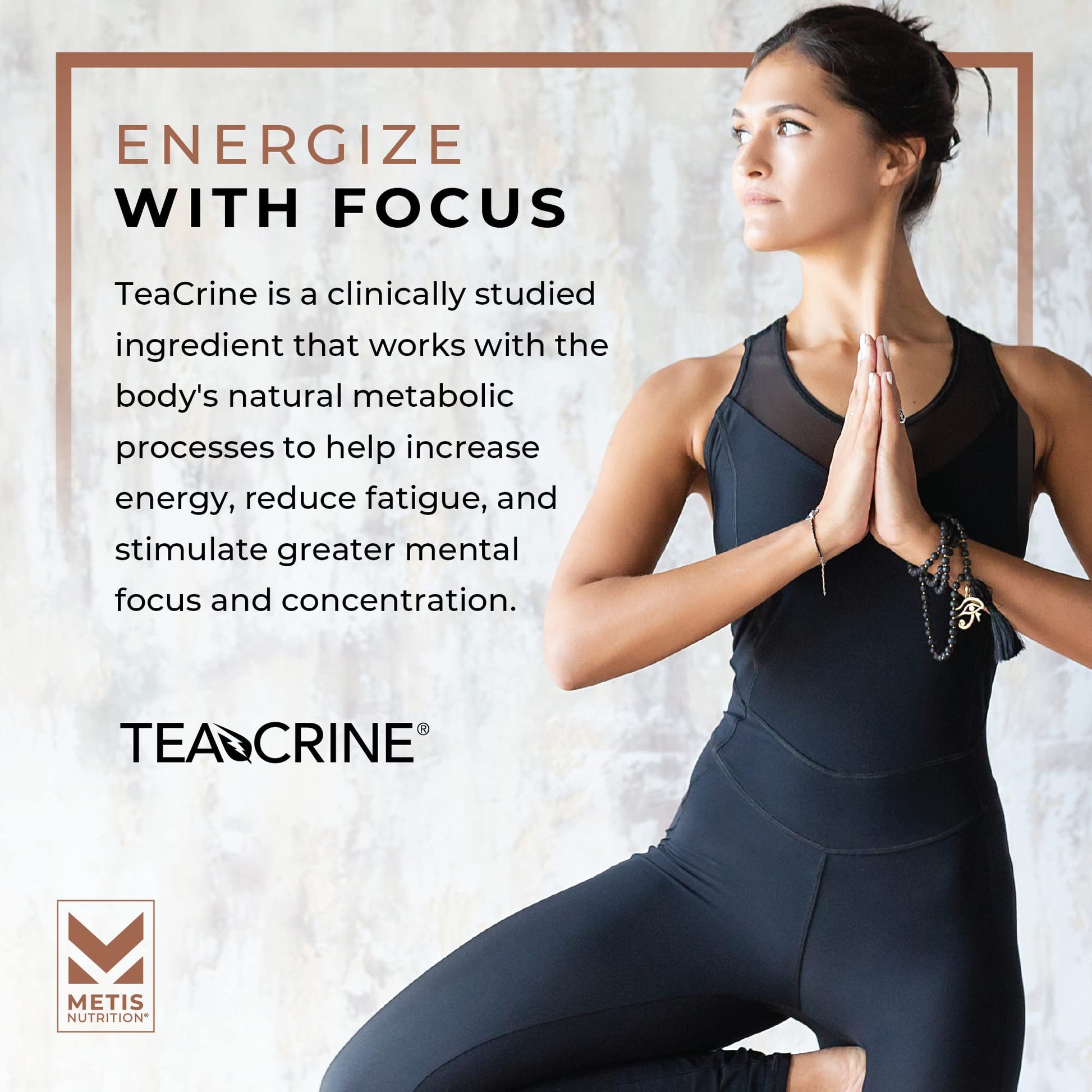 - Increased Energy & Focus: A single capsule provides a strong combination of energy sources to help you get through your day or your workouts without the “crash”. A synergistic blend of Caffeine Anhydrous, Green Tea Leaf Powder, and Yohimbe Bark Extract will have you energized as you go about your day. TeaCrine is a patented ingredient that helps users increase their energy levels without increasing their heart rate. A Cognitive Focus Blend will ensure you stay locked in.