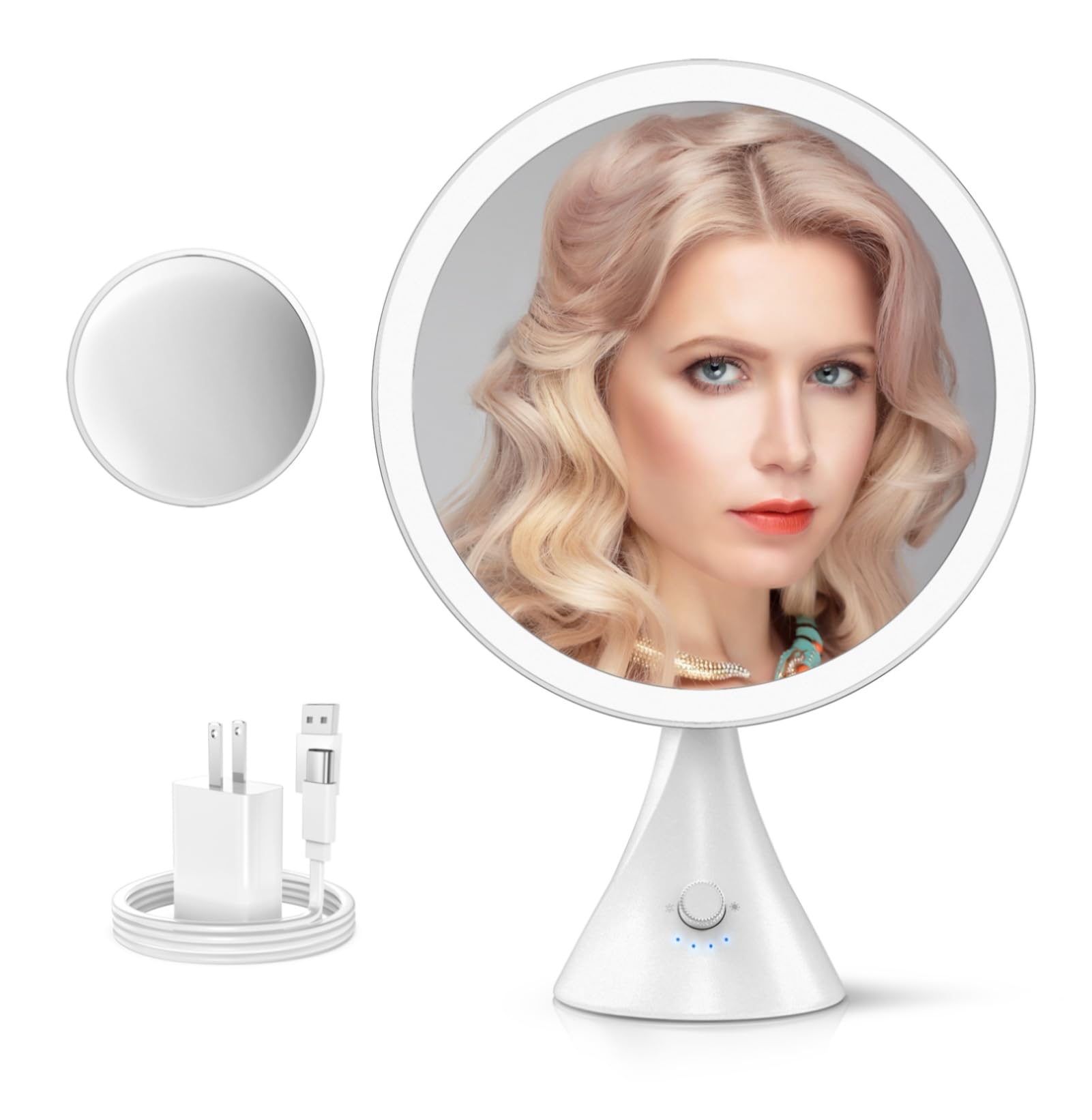 - Luxury Brushed Metal Build-Exquisite Gifts For Woman:Crafted from pearl nickel finishthis mirror combines elegance anddurability. The light-diffusing metallicframe enhances illumination whileresisting humidity, mold, and daily wear.Unique small waist shape increases the stability of the base and the comfort of holding.We always maintain an attitude of customer service, if you have any questions, please contact us, we will give you a satisfactory answer.