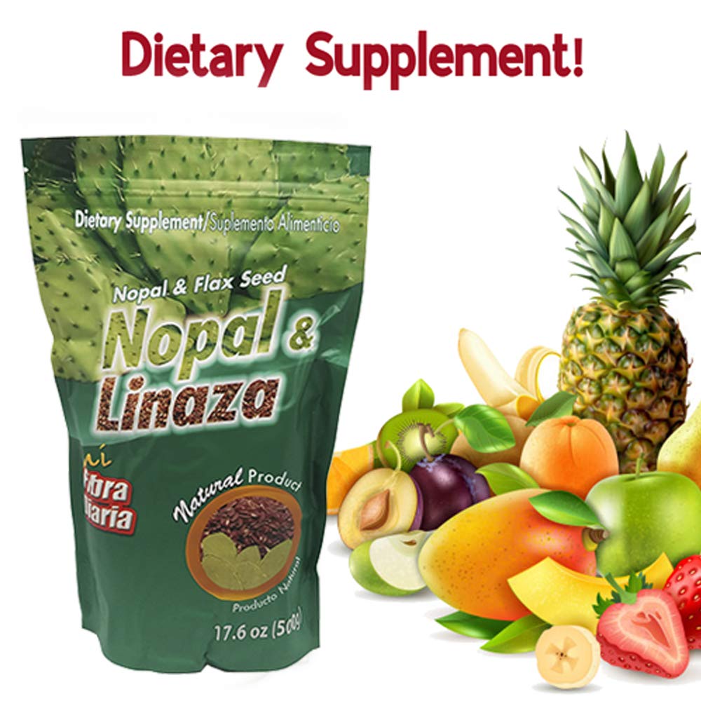 Mi Fibra Diaria Nopal & Linaza. Nopal Cactus and Flax Seed Fiber Dietary Supplement. 17.6 oz.