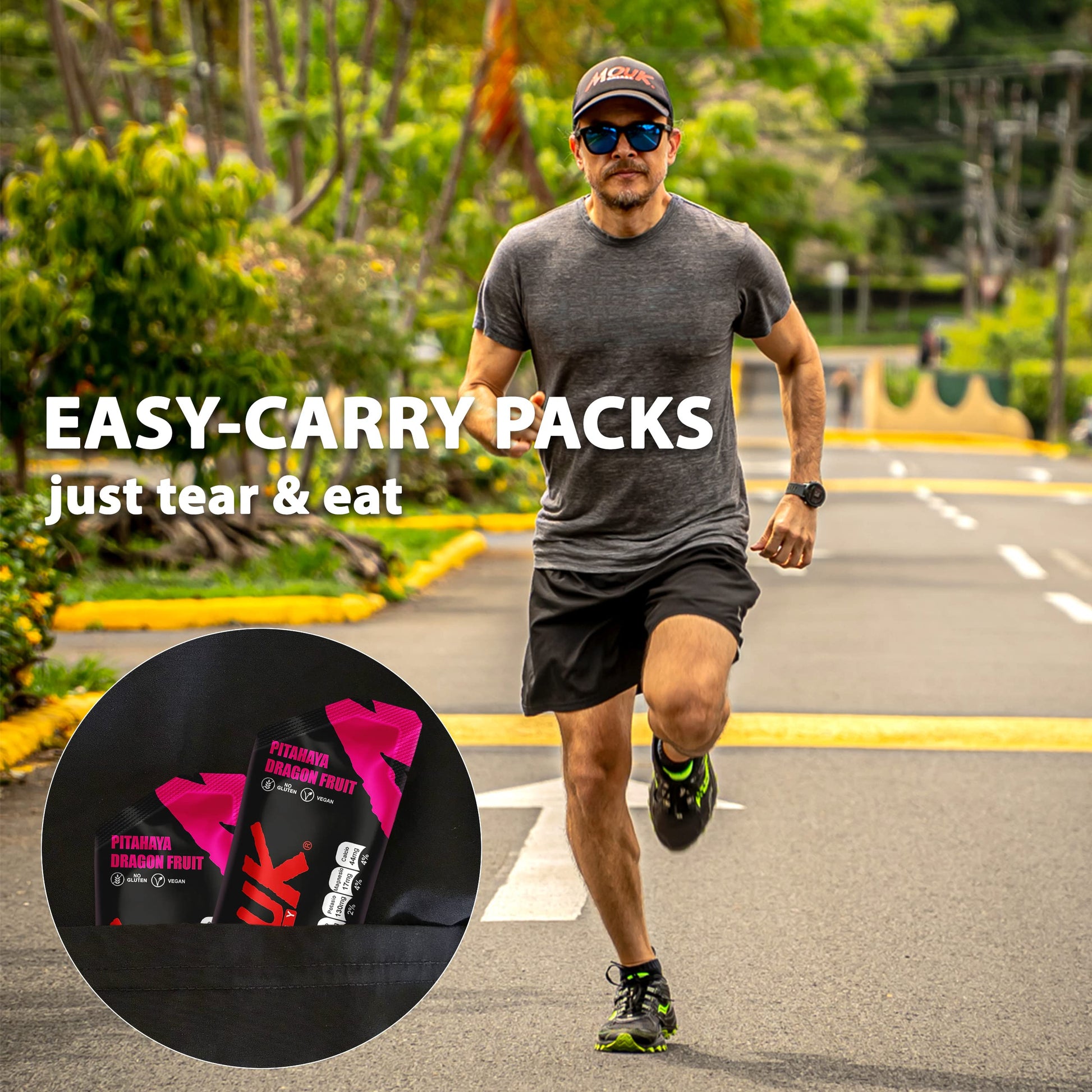 MOUK Energy Workout & Sports Nutrition Energy Gel - Dragon Fruit Flavor All Natural with Whole Chia Seeds | Easy Digestion, Vegan, Gluten Free, Essential Electrolyte | 1.38 Ounce (Pack of 10)