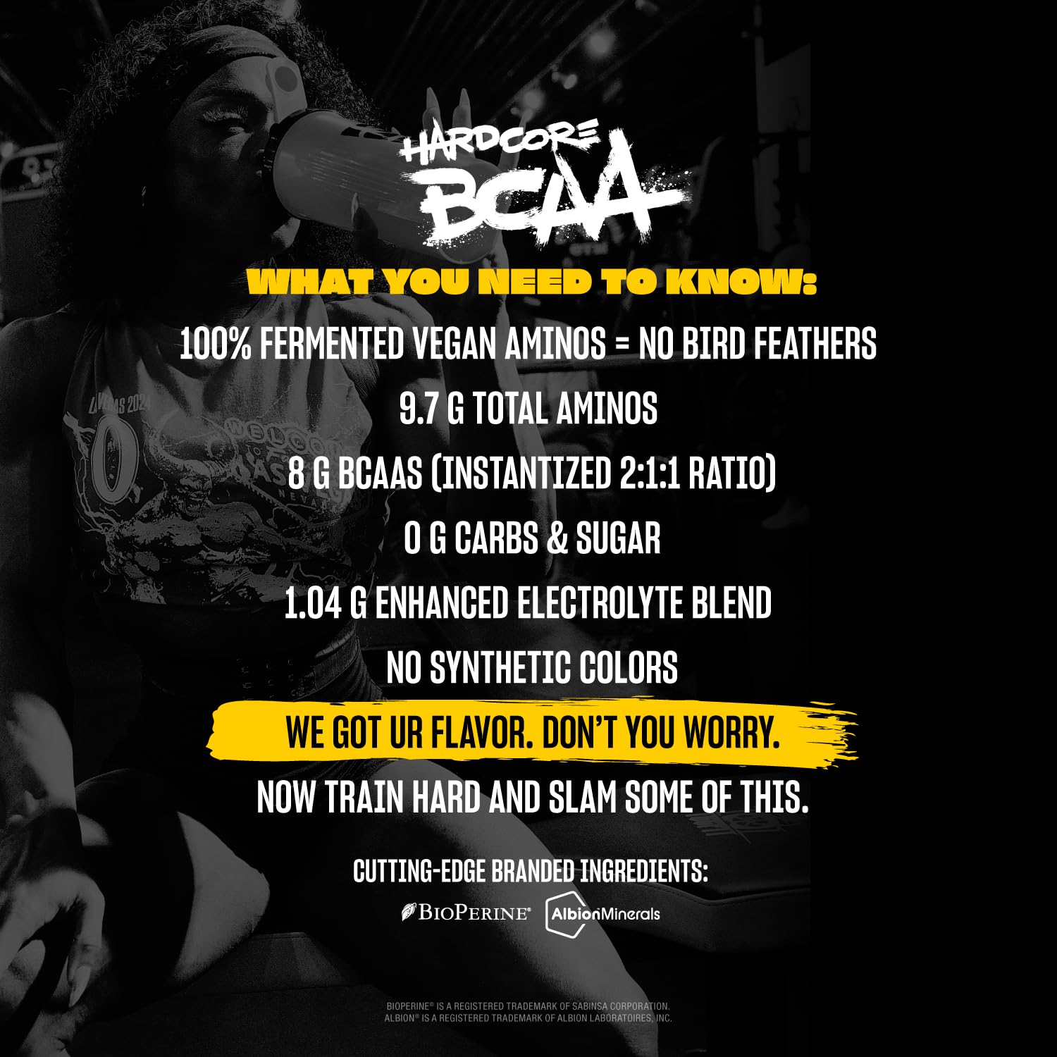 • Lab-Tested for Quality & Purity - Hardcore BCAA is developed and manufactured in a government-licensed facility and rigorously tested to ensure guaranteed quality, purity, and potency in every batch.