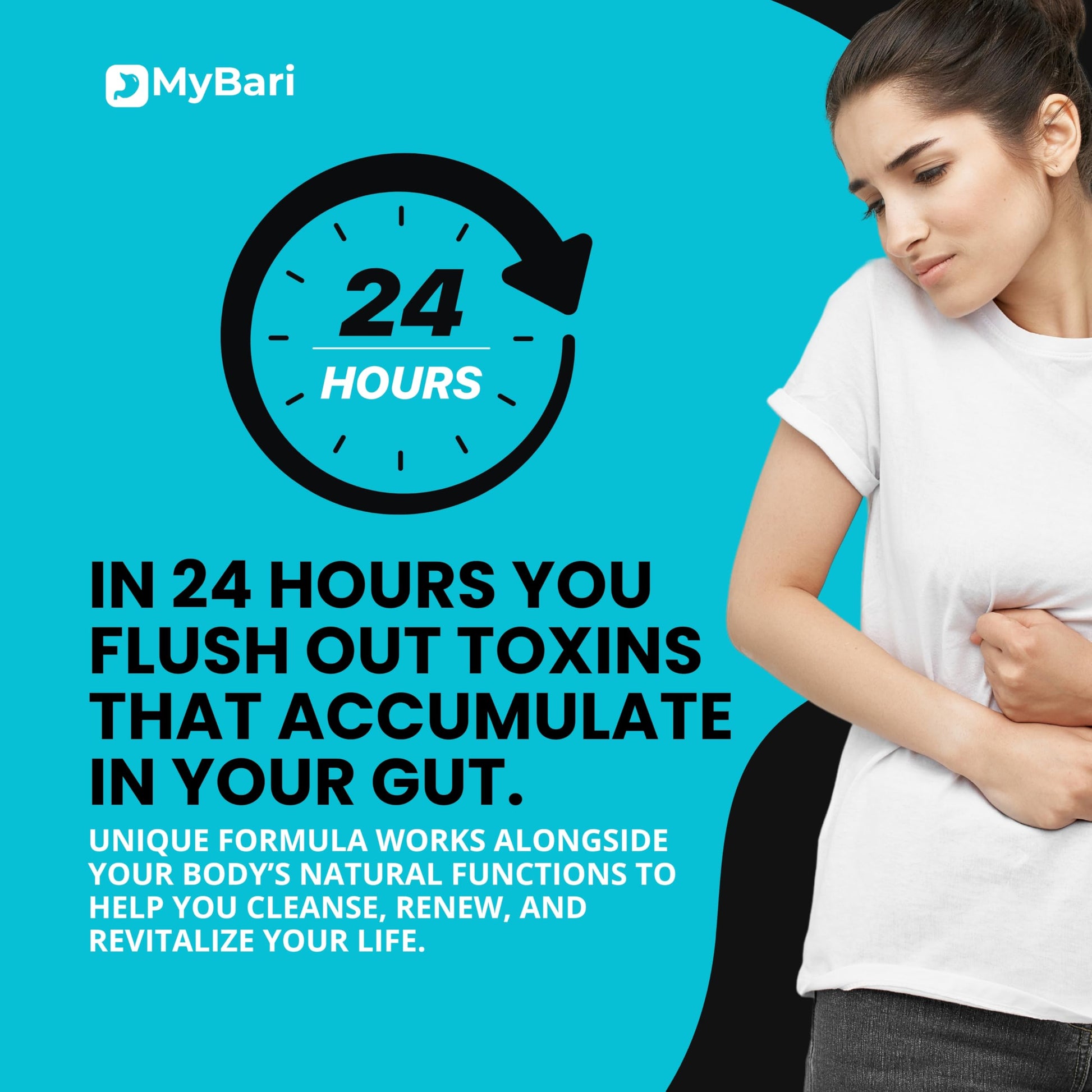 - MyBari 15 Day Cleanse is specifically formulated to effectively rid the intestines of accumulated waste and toxins, providing a thorough gut and colon detoxification over a 15-day period.